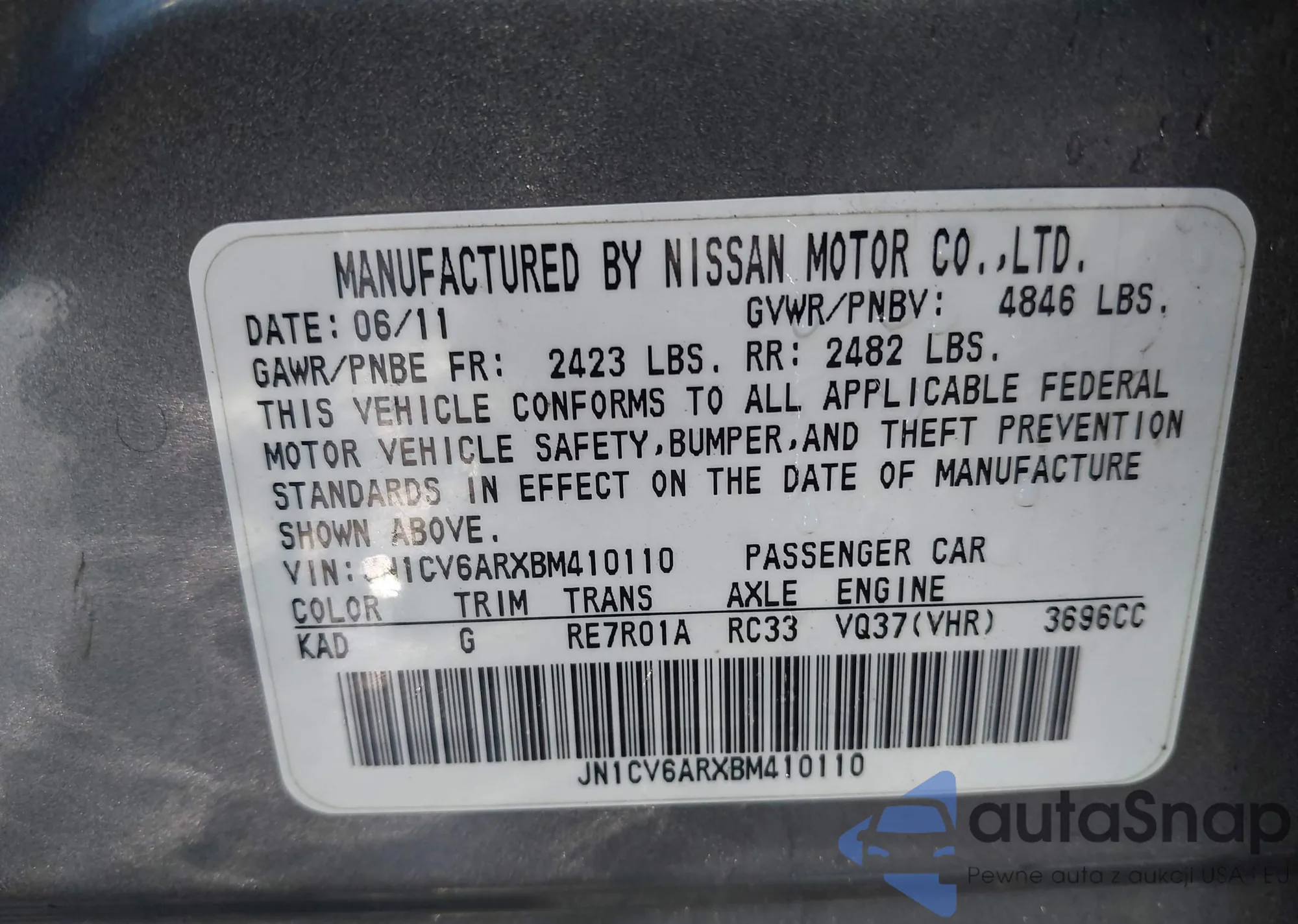 VIN: JN1CV6ARXBM410110