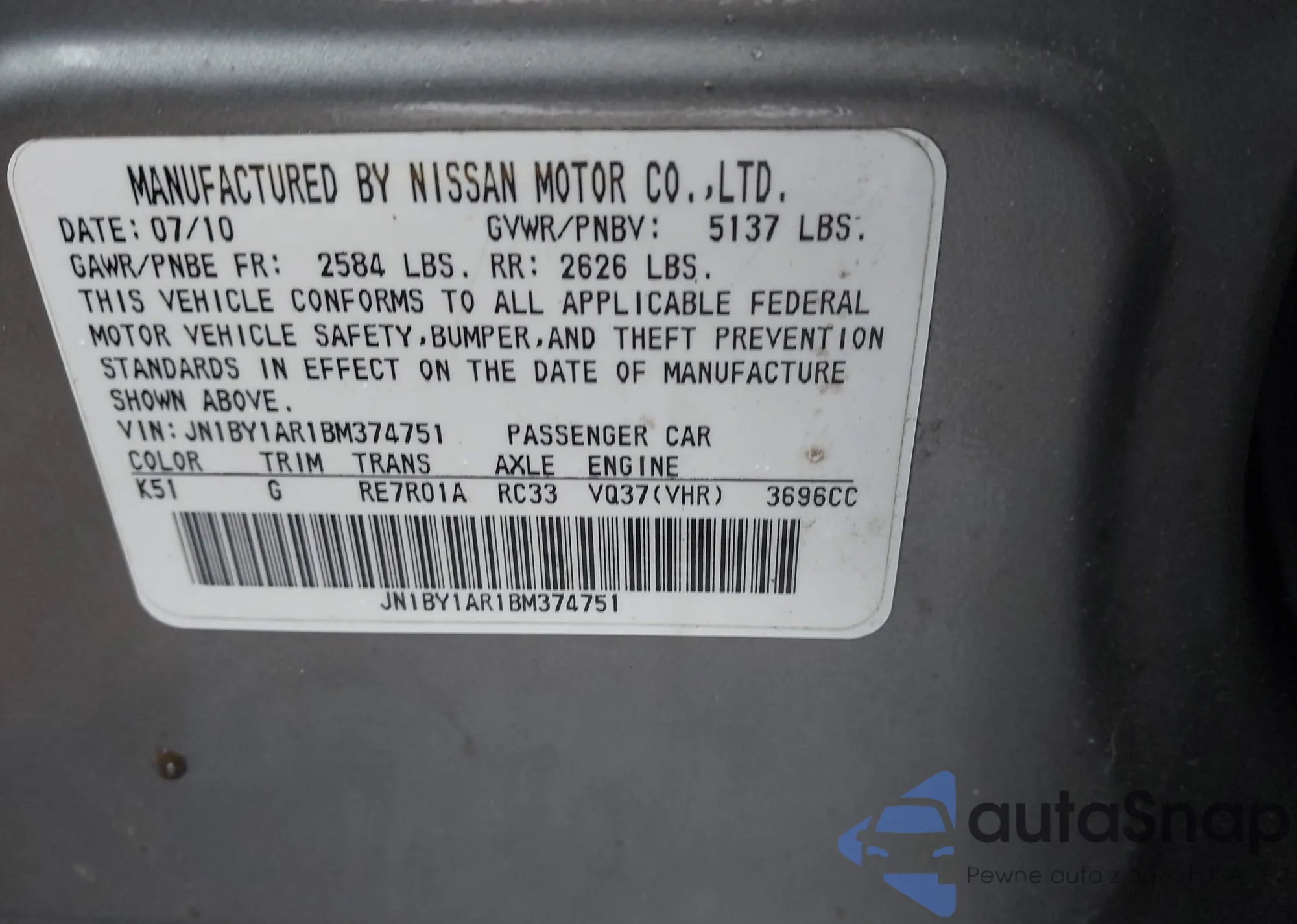 • VIN: JN1BY1AR1BM374751