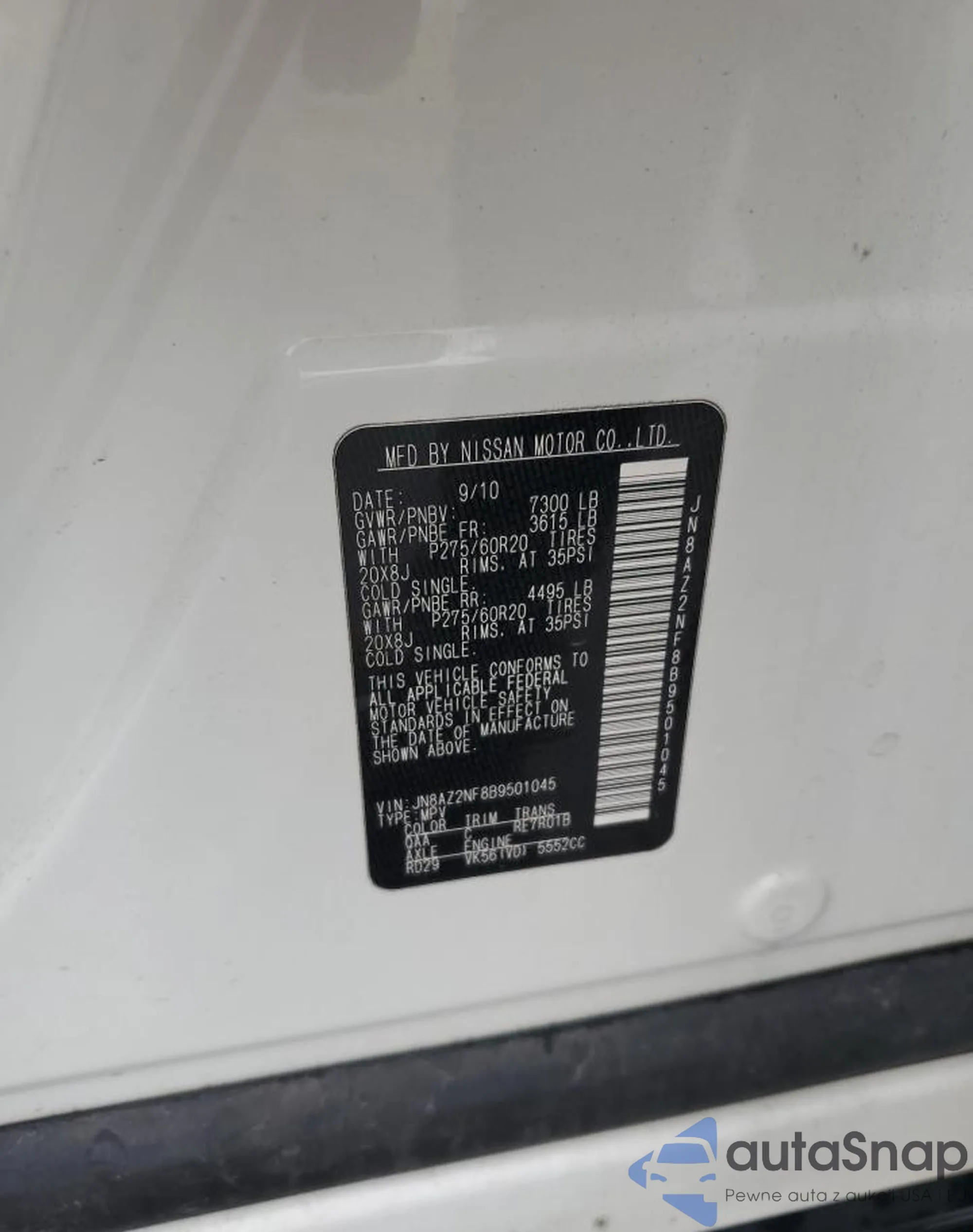 VIN: JN8AZ2NF8B9501045