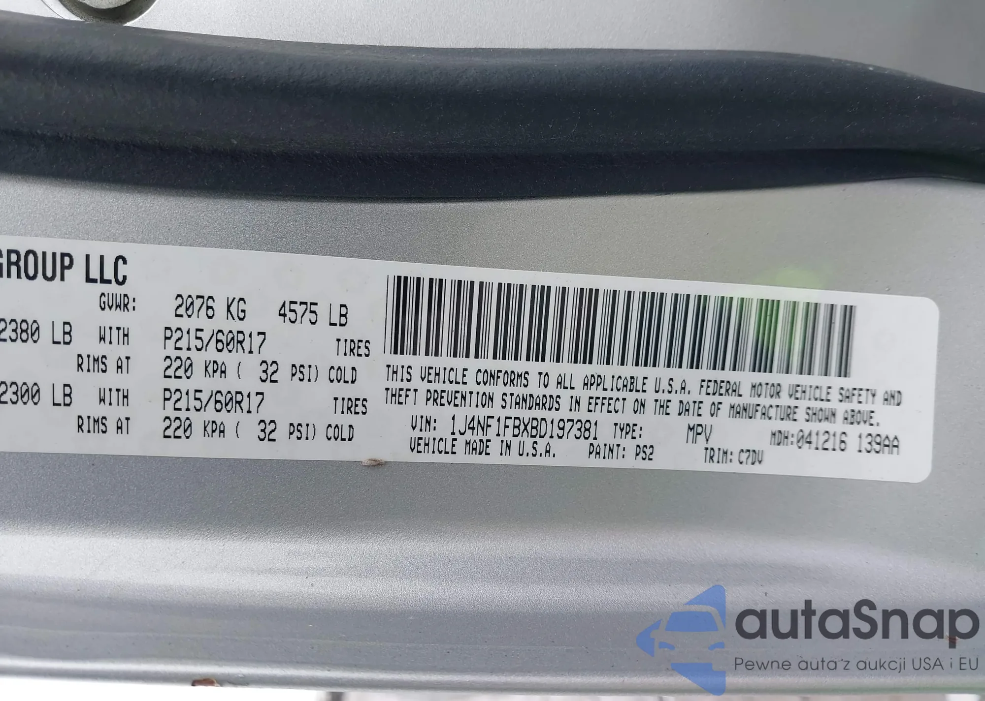 Samochód Jeep Compass 2011 (VIN 1J4NF1FBXBD197381) sprzedaje go niezweryfikowany sprzedawca. Zalecamy raport Carfax i potwierdzenie możliwości rejestracji pojazdu przed zakupem.