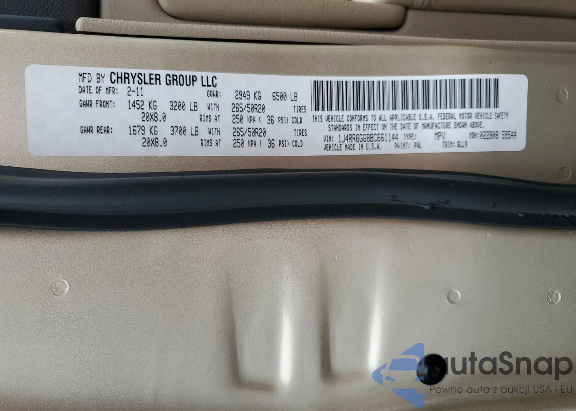 VIN: 1J4RR6GG8BC661144
