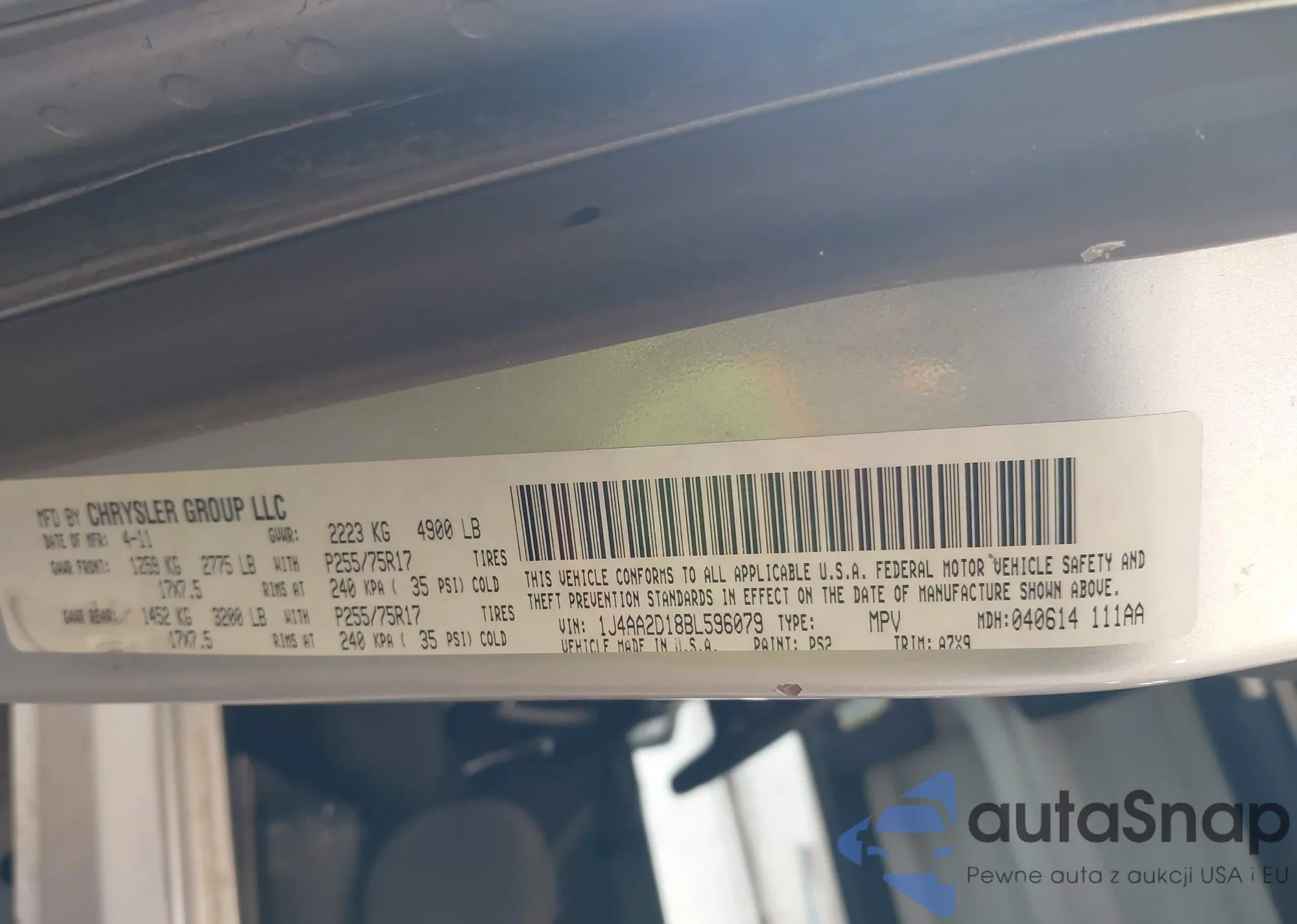 Samochód Jeep Wrangler 2011 (VIN 1J4AA2D18BL596079) nie był wcześniej licytowany. Dokumenty są czyste, przebieg odpowiada lub jest niższy niż średnia rynku. Sprzedaje go firma ubezpieczeniowa – polecamy zakup. Dostawa do portu zajmie ok. 6–8 tygodni.