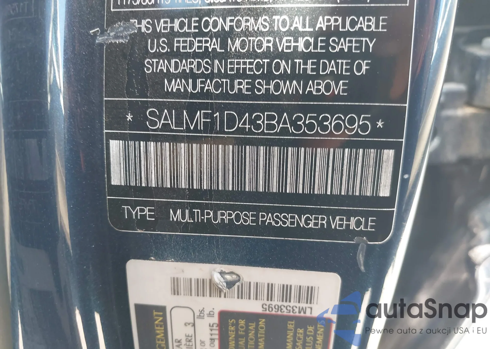 • VIN: SALMF1D43BA353695