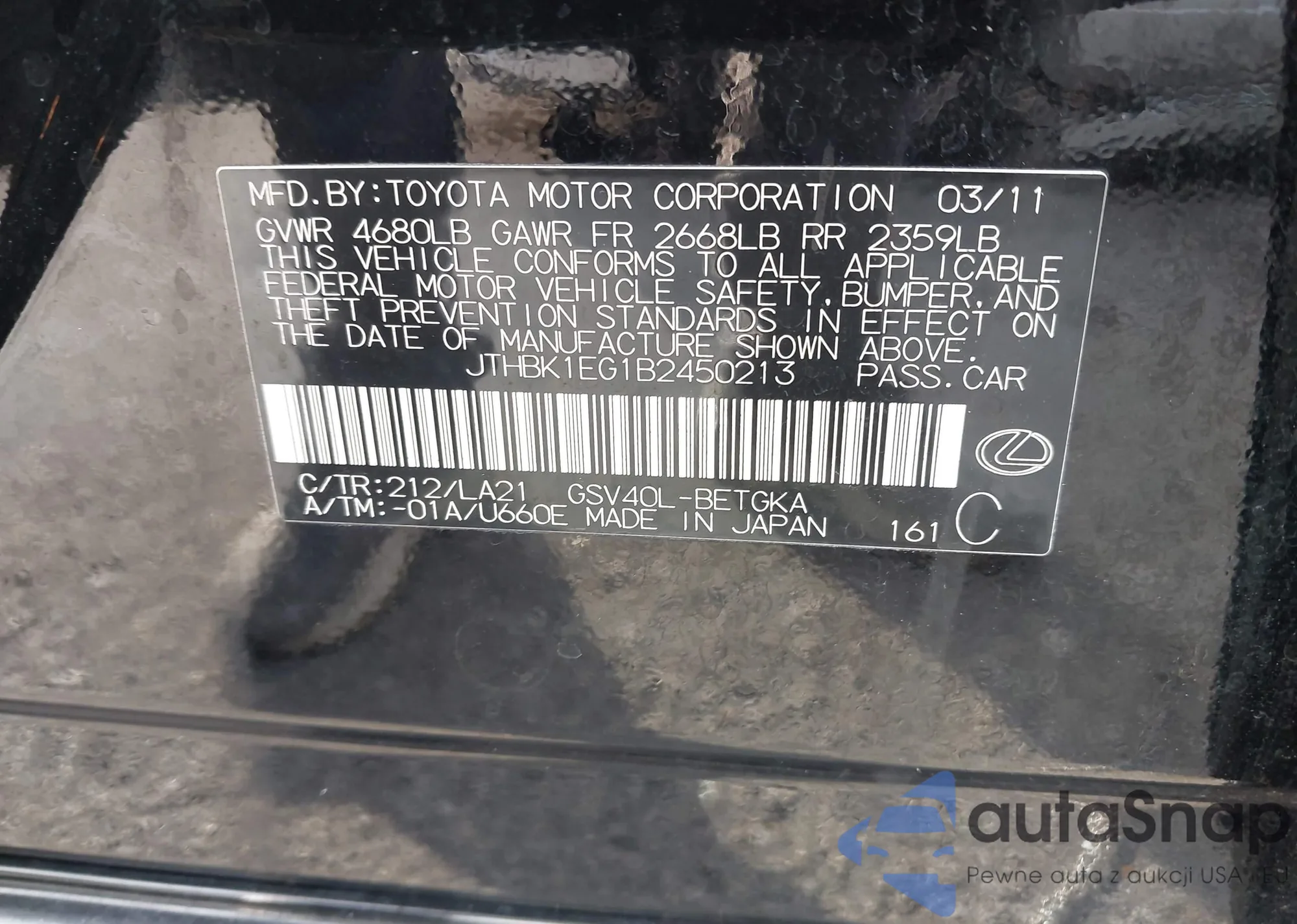 VIN: JTHBK1EG1B2450213