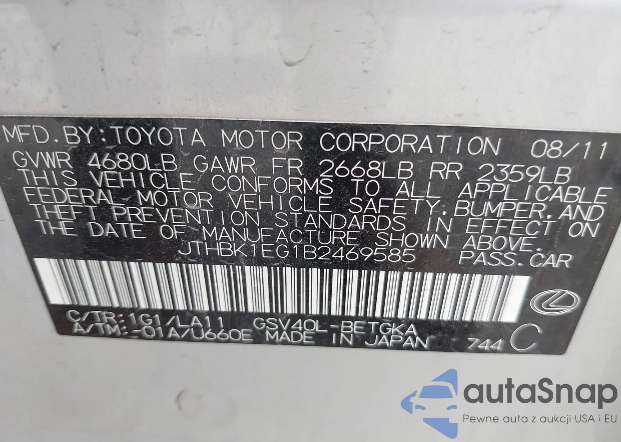 VIN: JTHBK1EG1B2469585