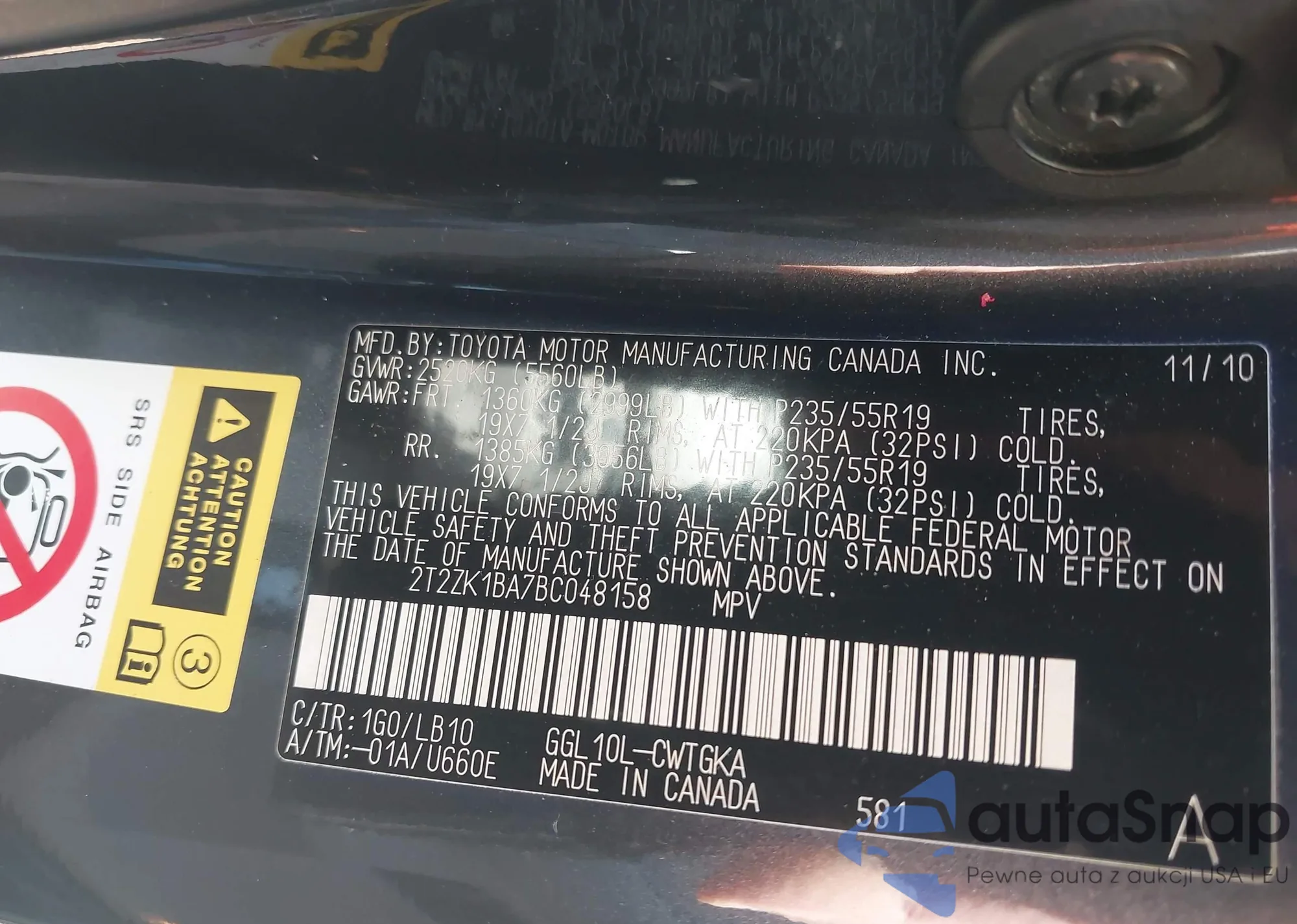 VIN: 2T2ZK1BA7BC048158
