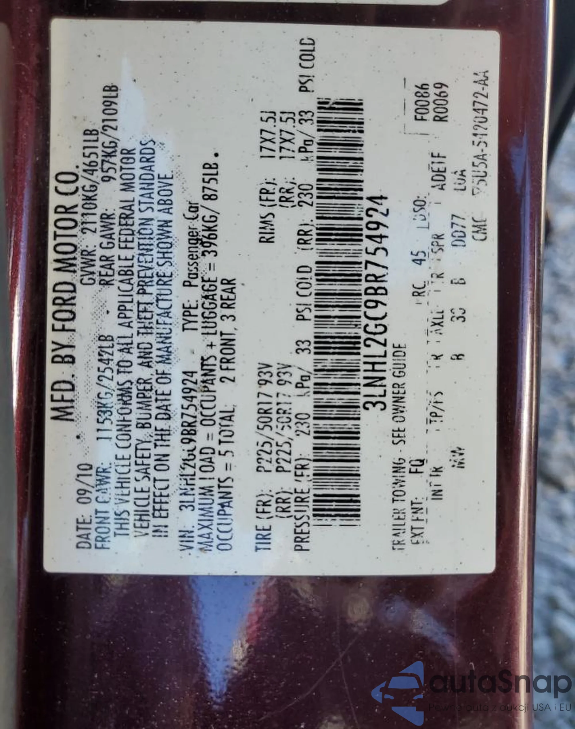 Samochód Lincoln MKZ 2011 (VIN 3LNHL2GC9BR754924) sprzedaje go niezweryfikowany sprzedawca. Zalecamy raport Carfax i potwierdzenie możliwości rejestracji pojazdu przed zakupem.