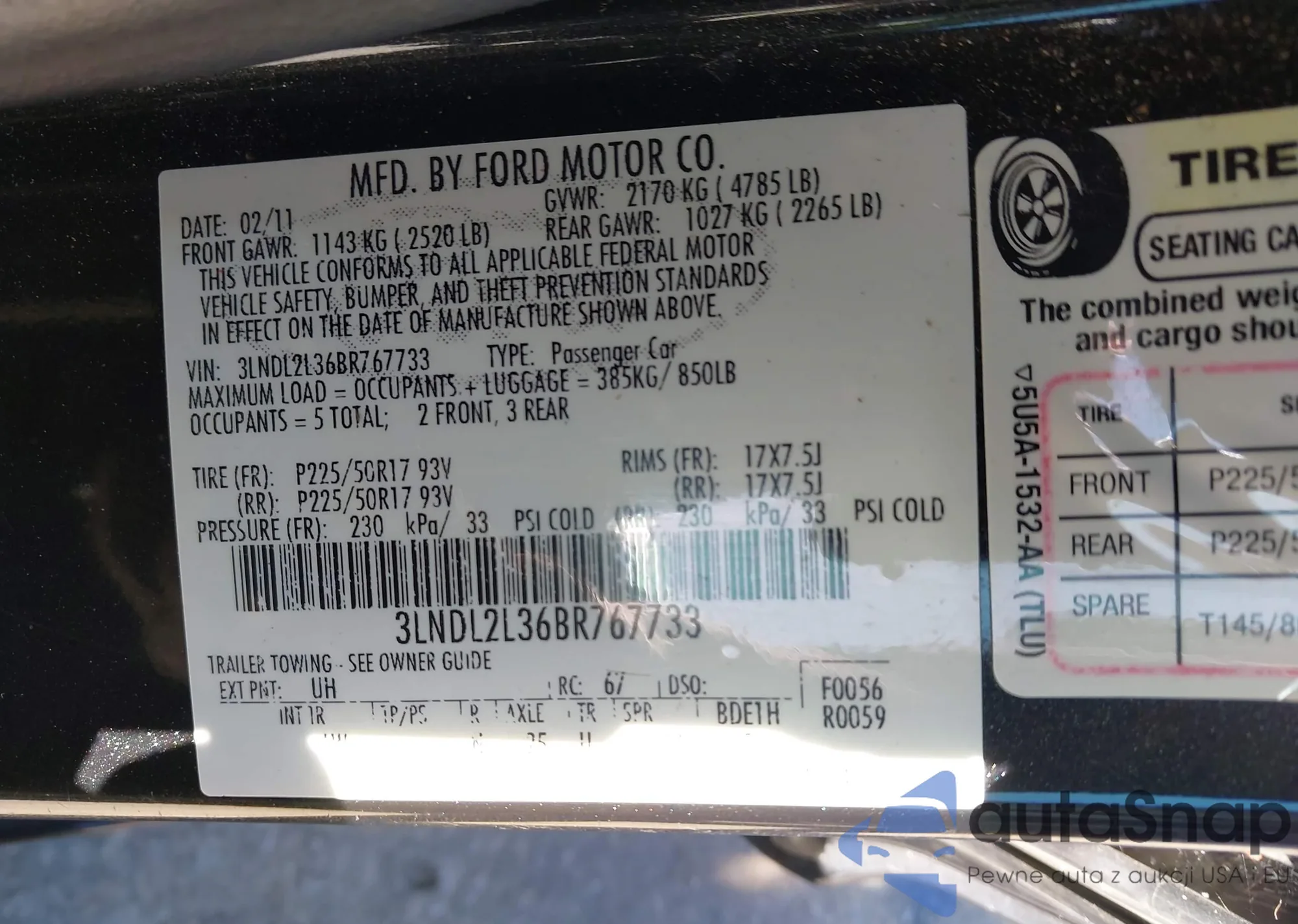 • VIN: 3LNDL2L36BR767733