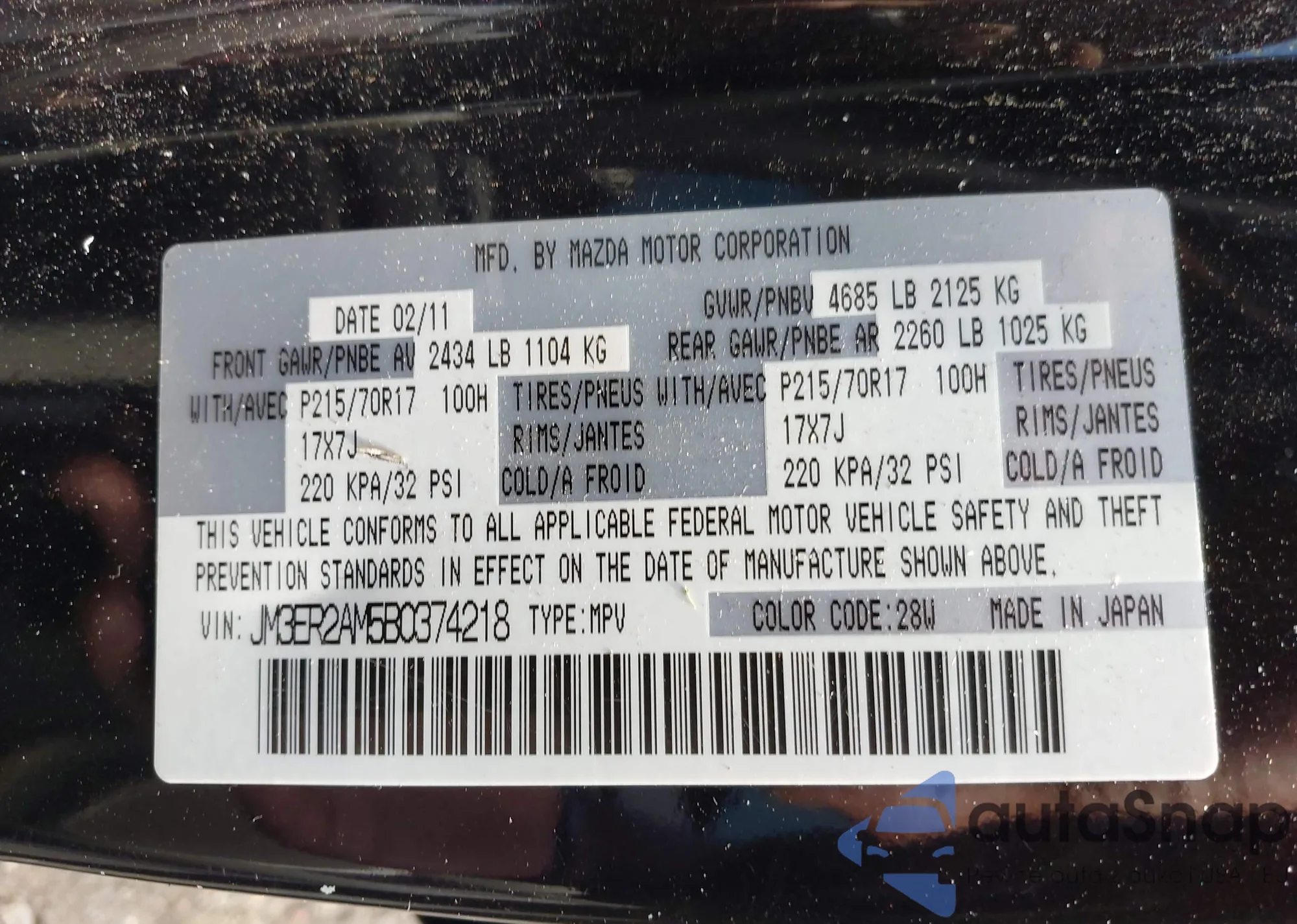 VIN: JM3ER2AM5B0374218