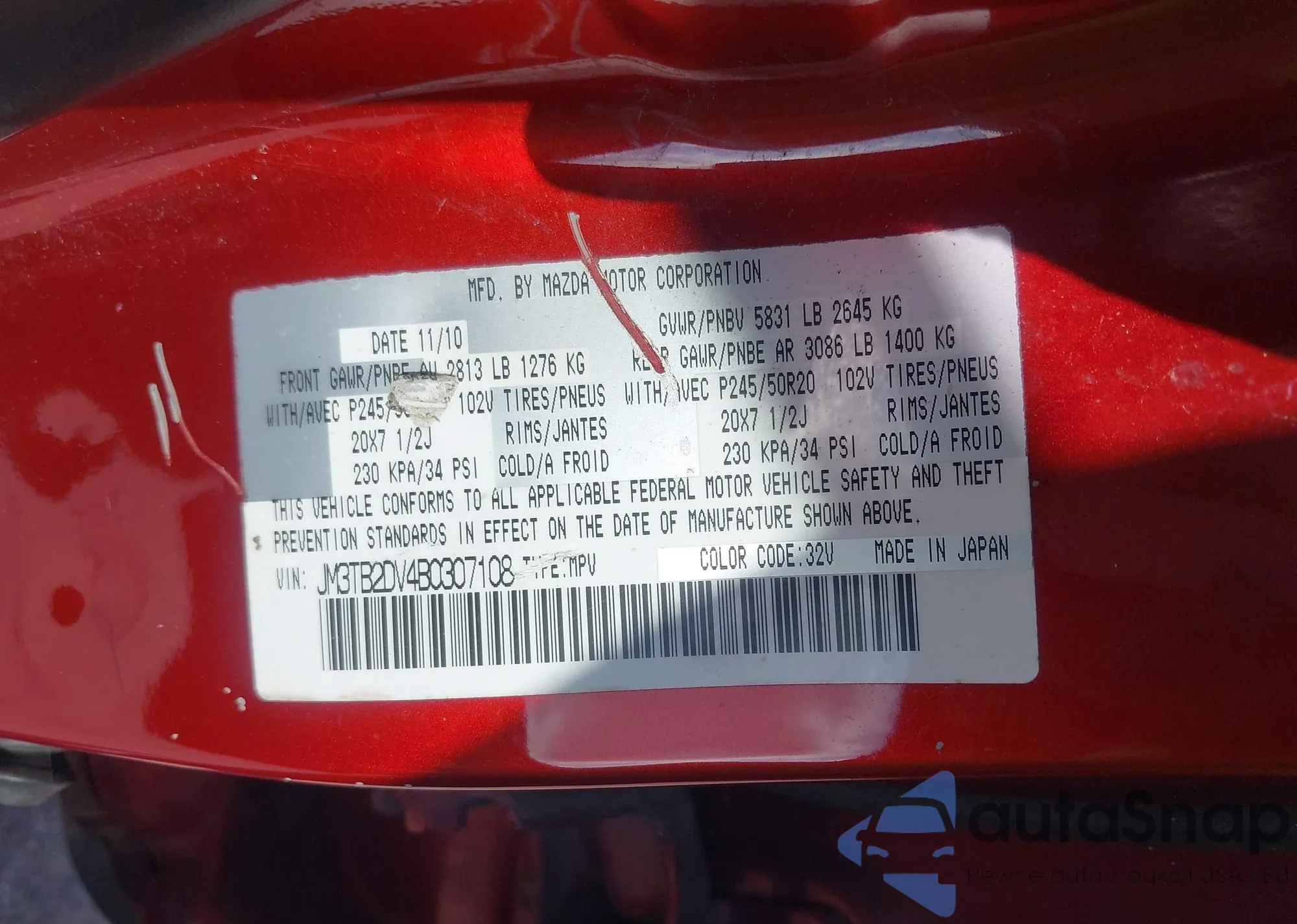 • VIN: JM3TB2DV4B0307108