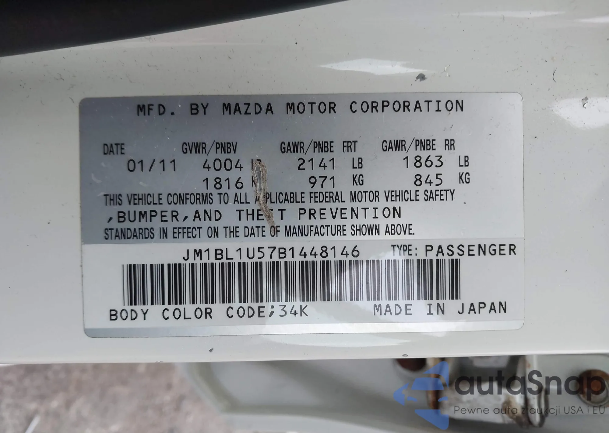 VIN: JM1BL1U57B1448146