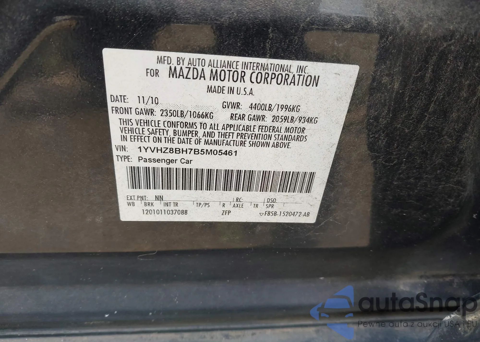 VIN: 1YVHZ8BH7B5M05461