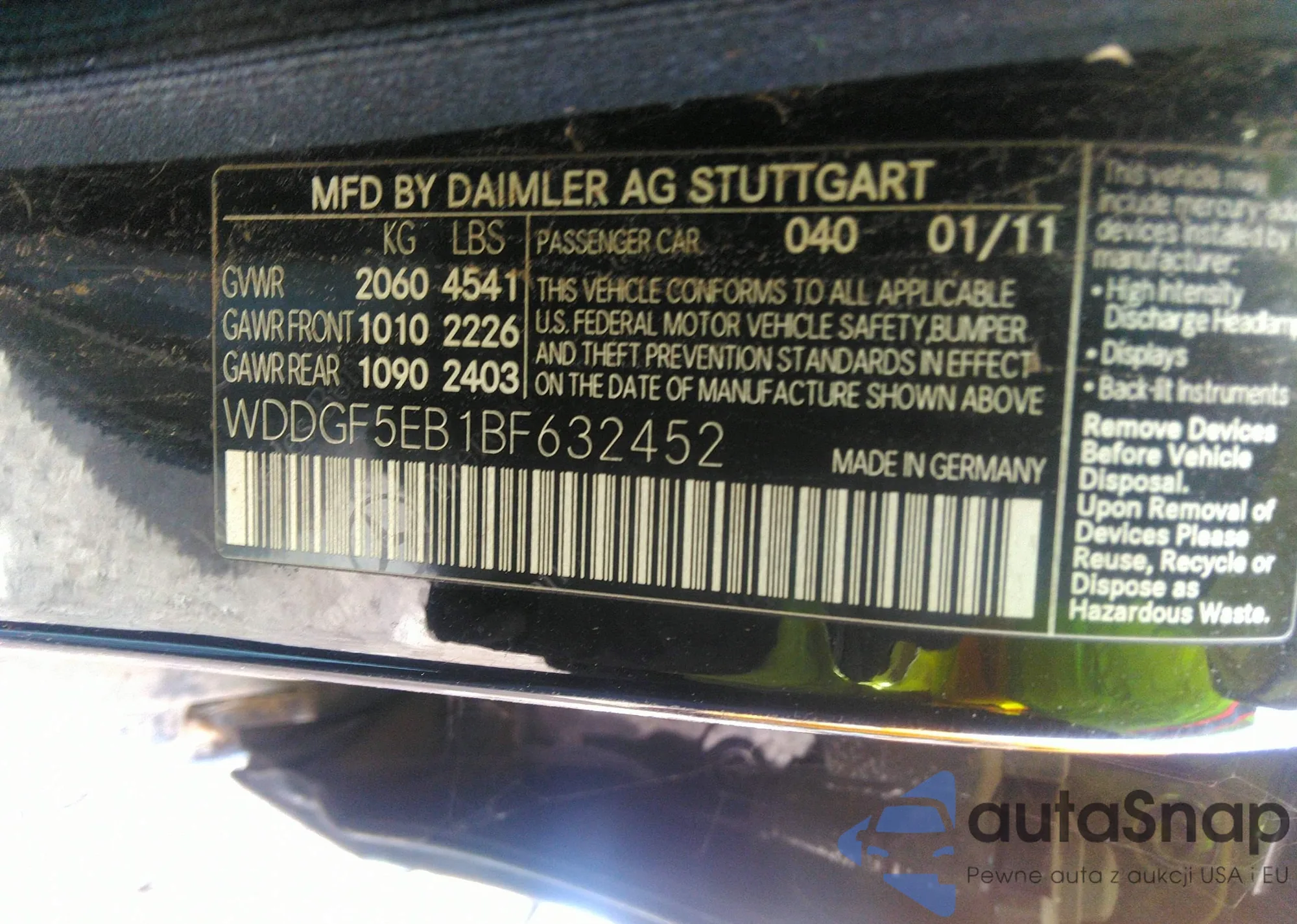 • VIN: WDDGF5EB1BF632452
