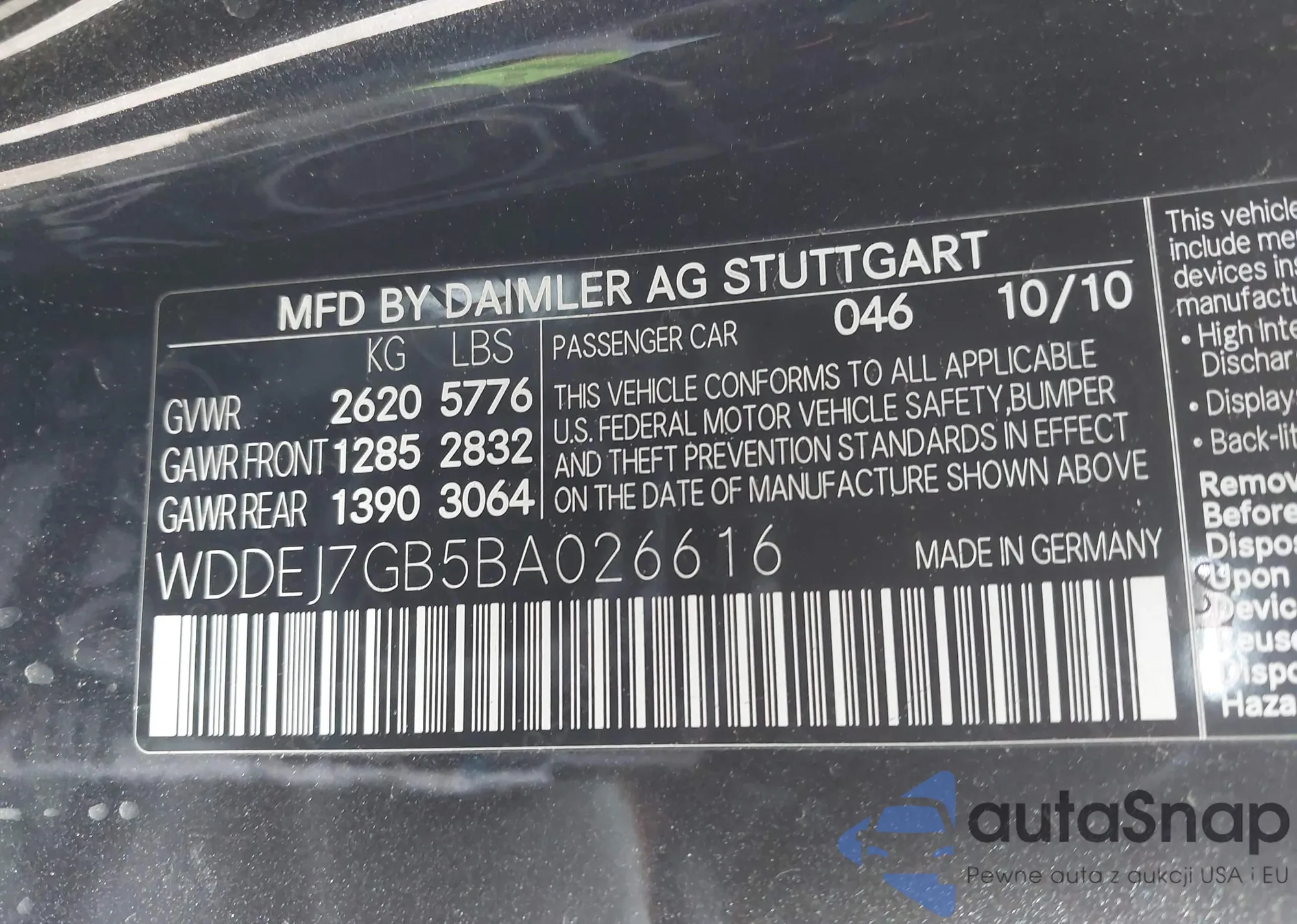 VIN: WDDEJ7GB5BA026616