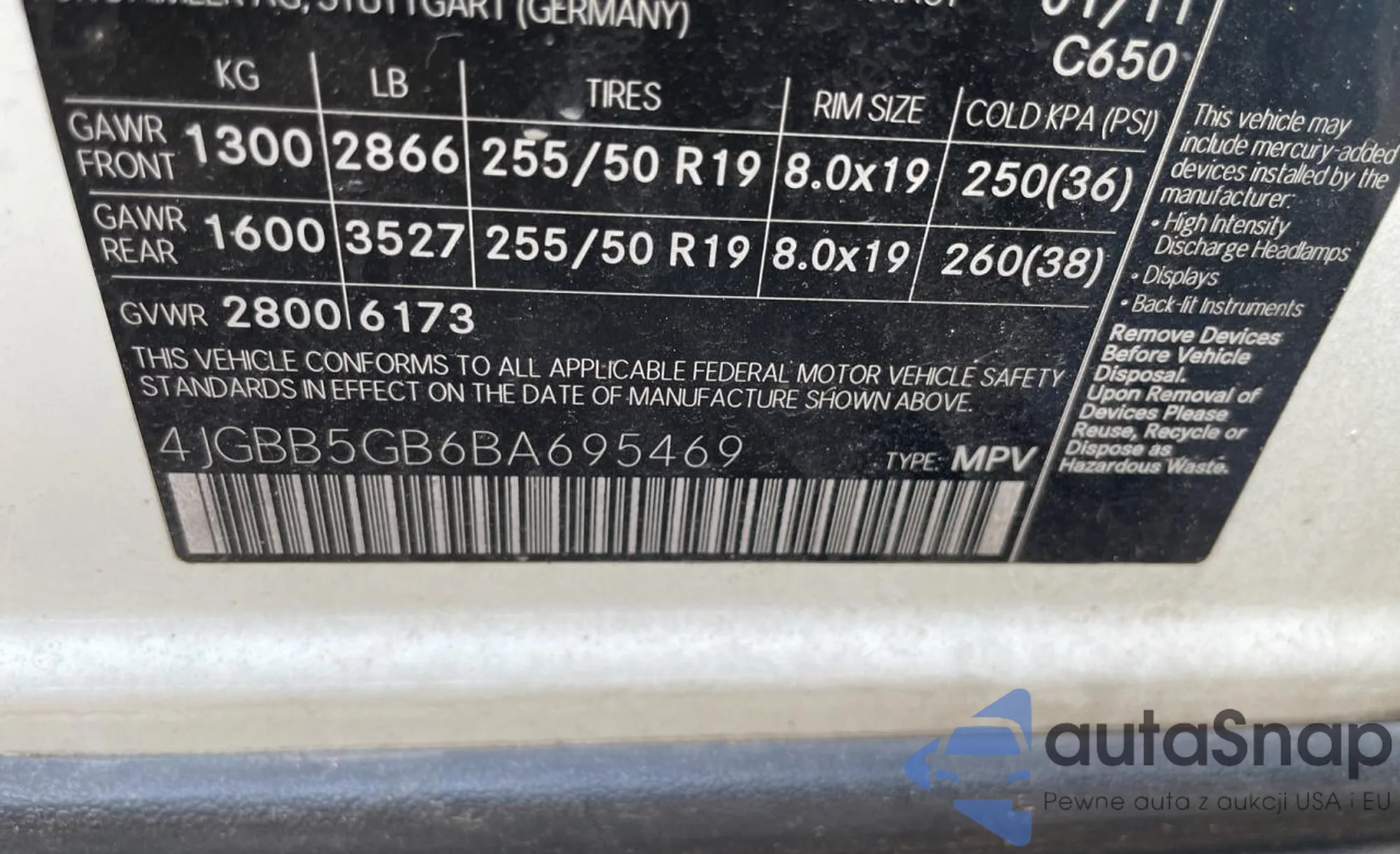 VIN: 4JGBB5GB6BA695469