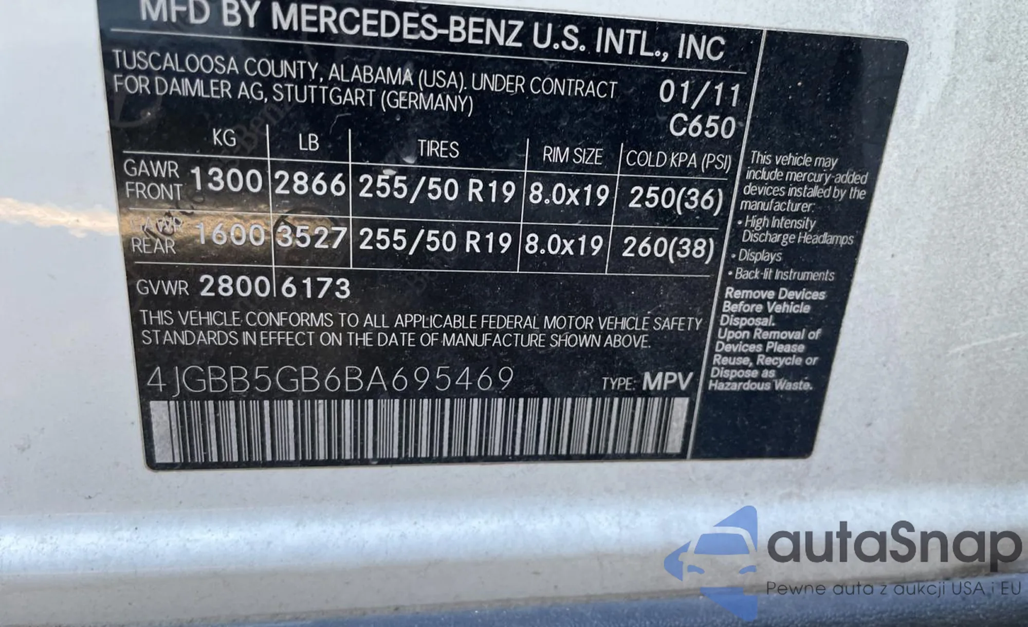VIN: 4JGBB5GB6BA695469