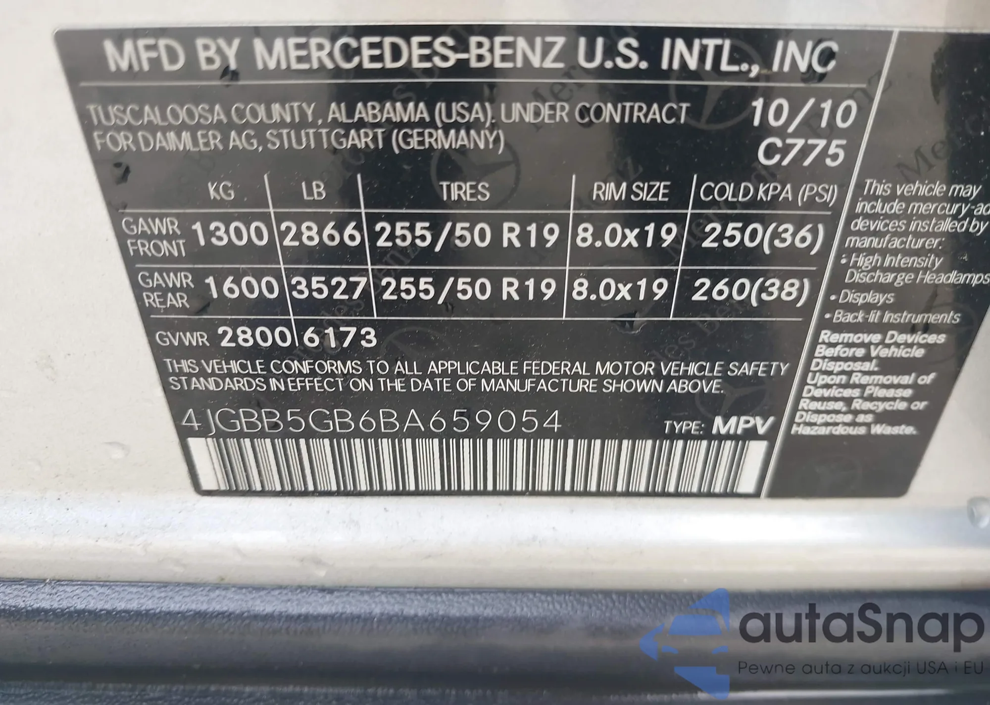 VIN: 4JGBB5GB6BA659054