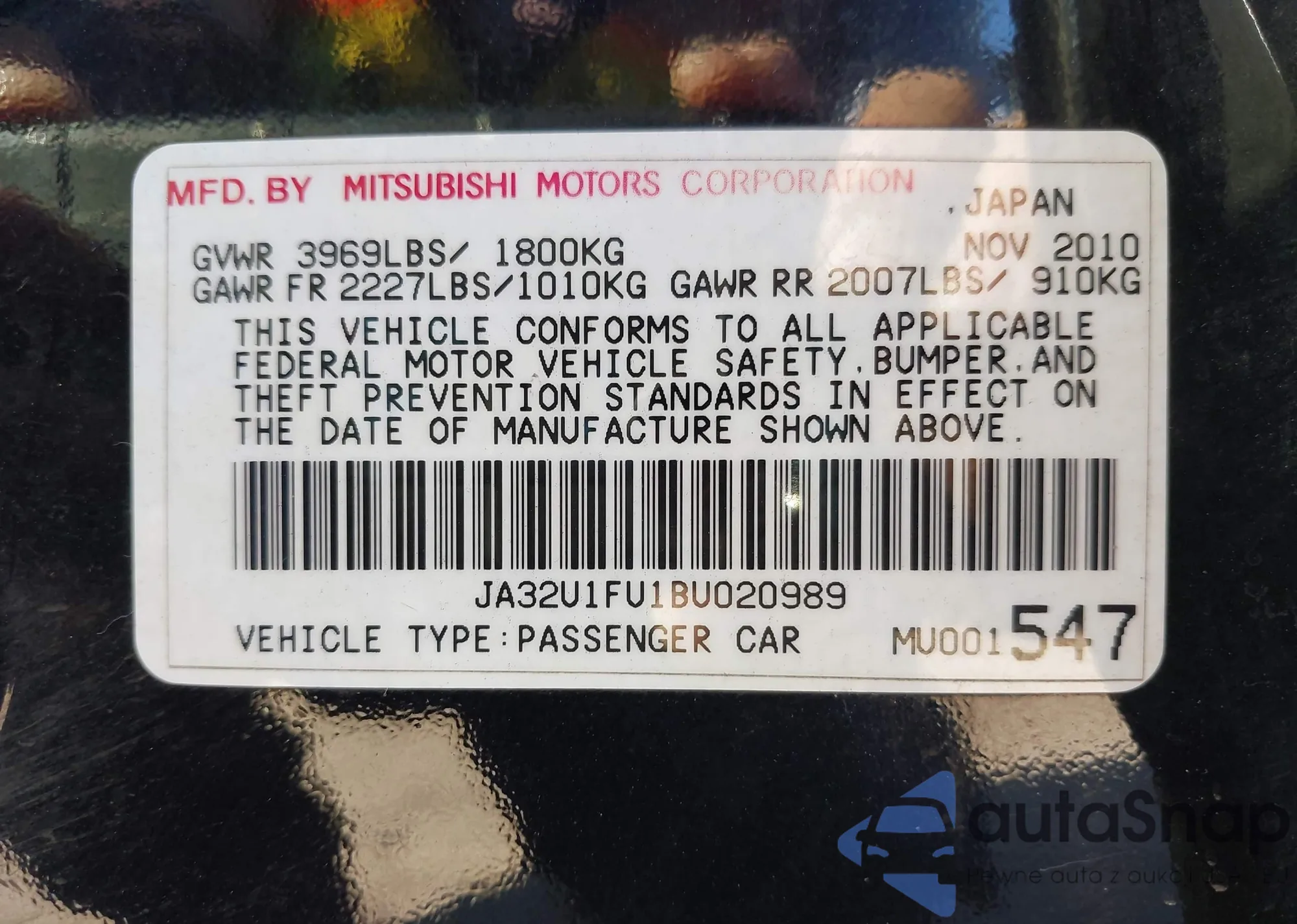 VIN: JA32U1FU1BU020989