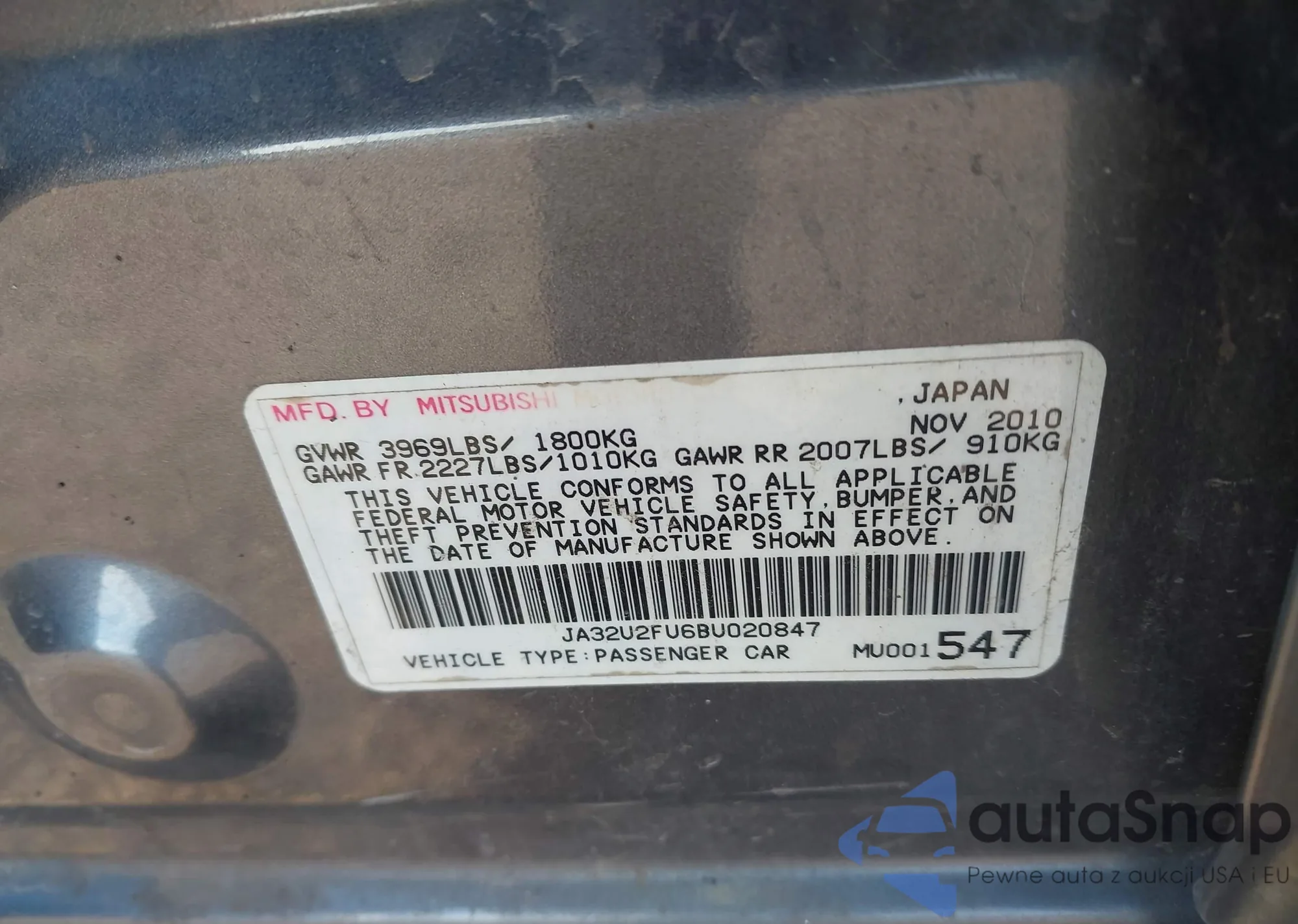 VIN: JA32U2FU6BU020847
