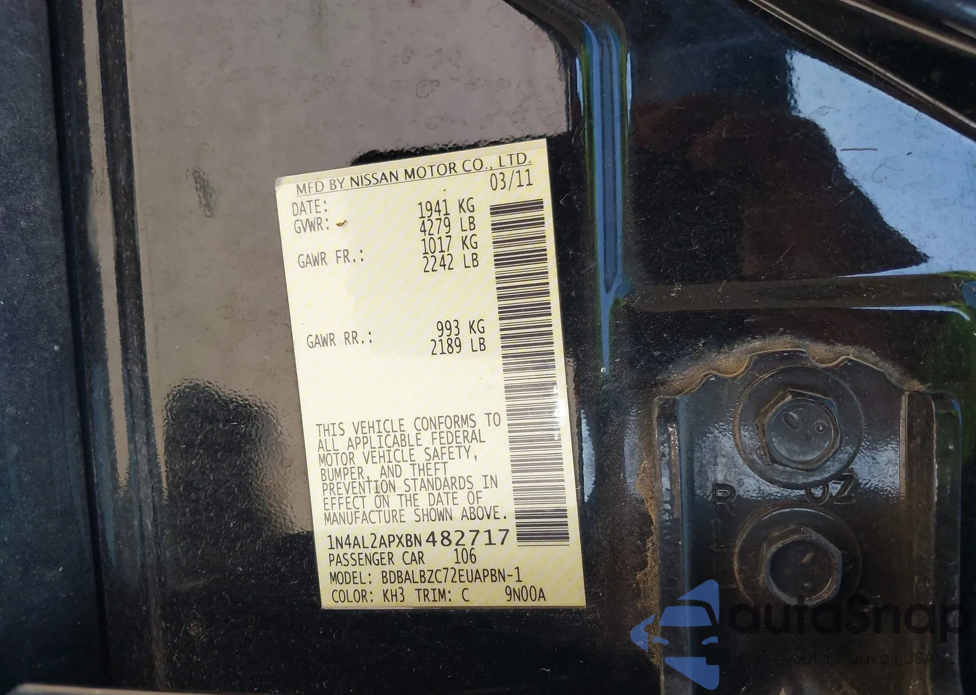 • VIN: 1N4AL2APXBN482717