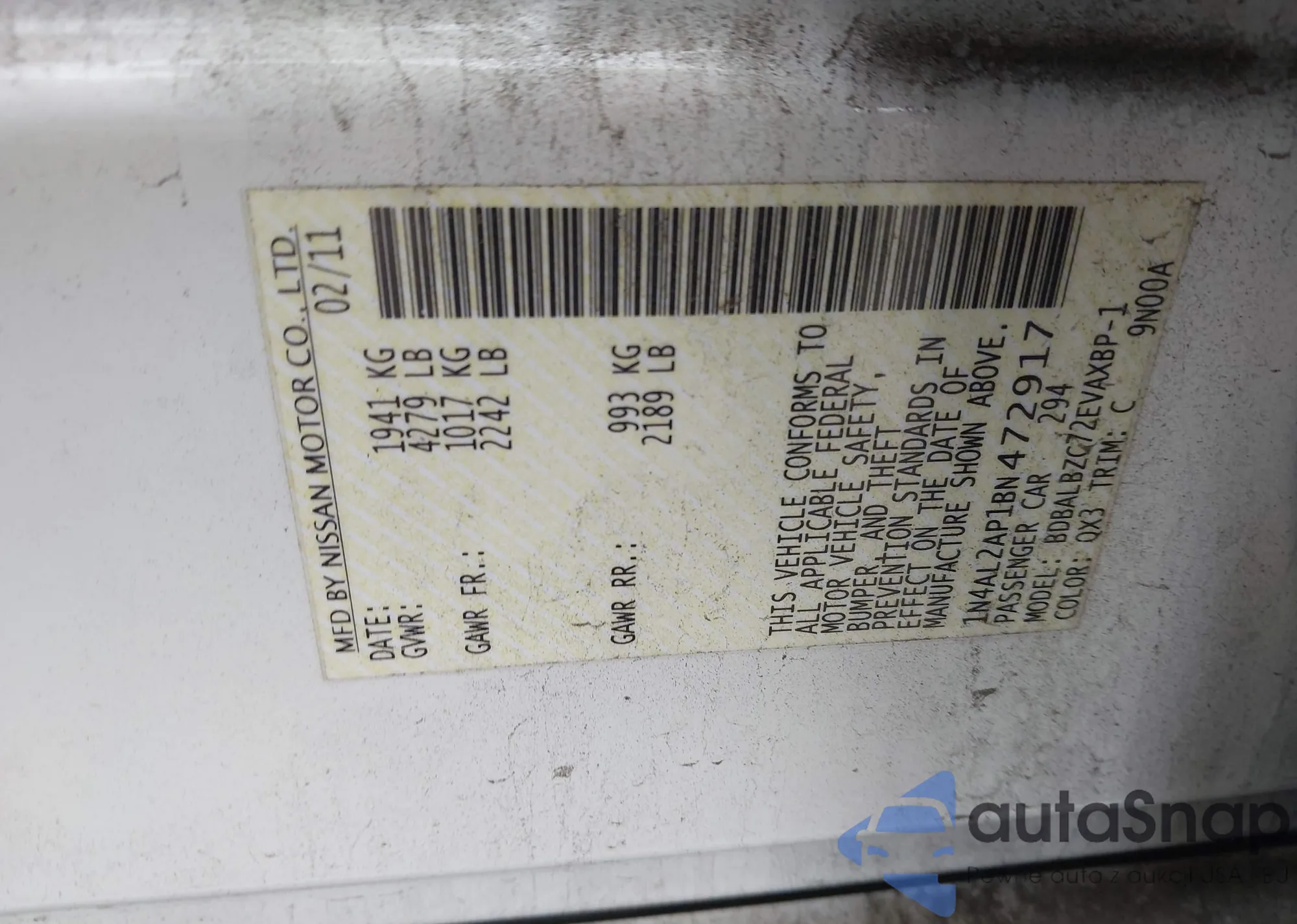 VIN: 1N4AL2AP1BN472917
