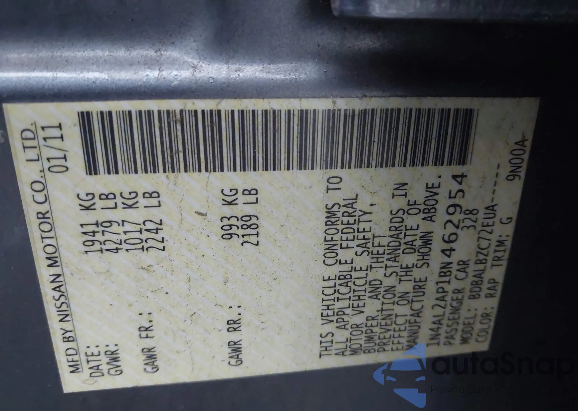 VIN: 1N4AL2AP1BN462954