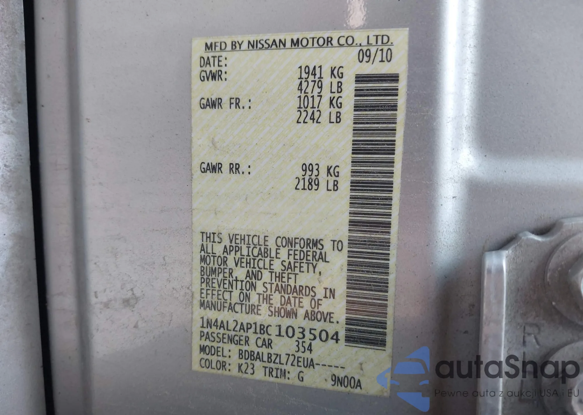 VIN: 1N4AL2AP1BC103504