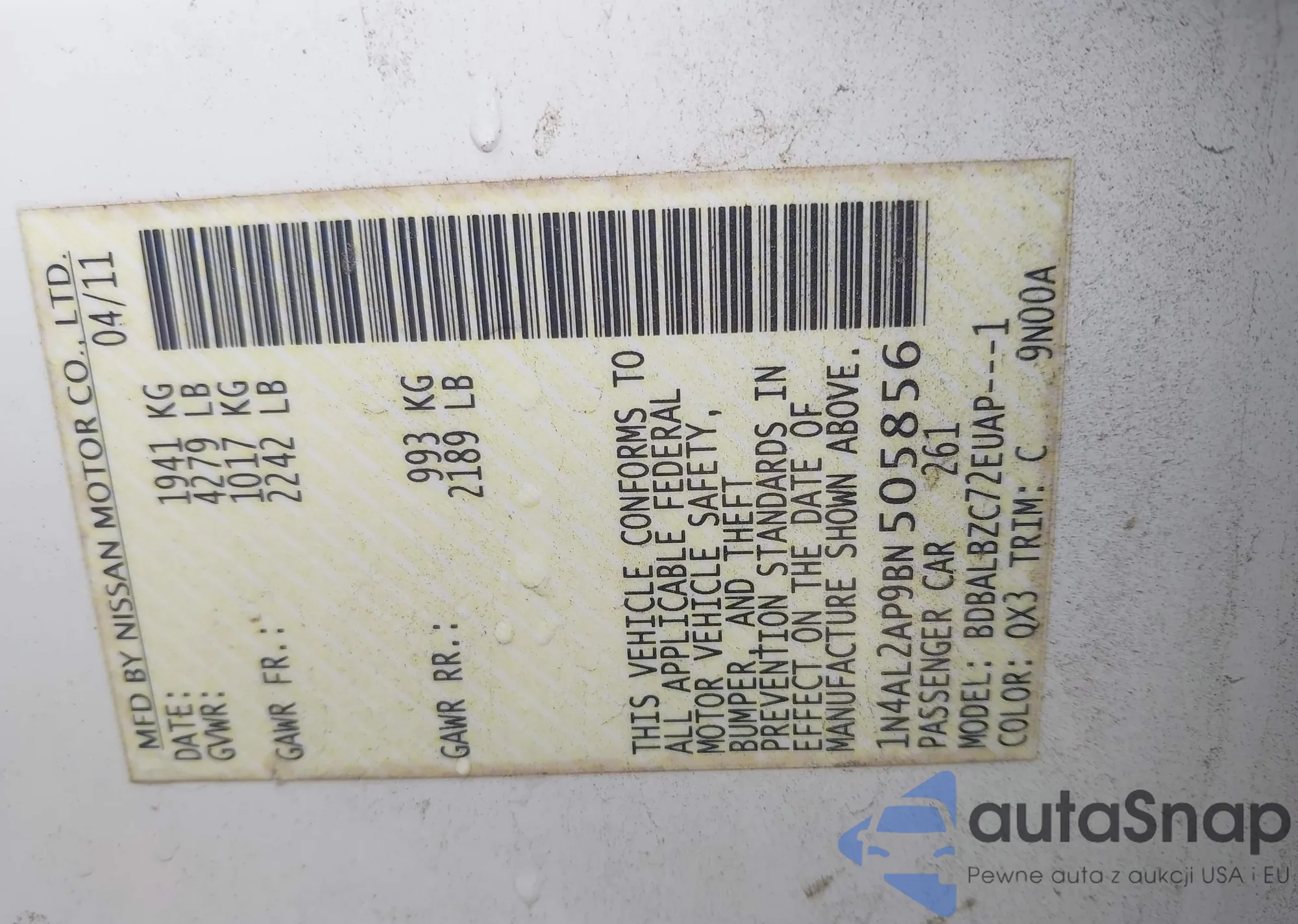 • VIN: 1N4AL2AP9BN505856