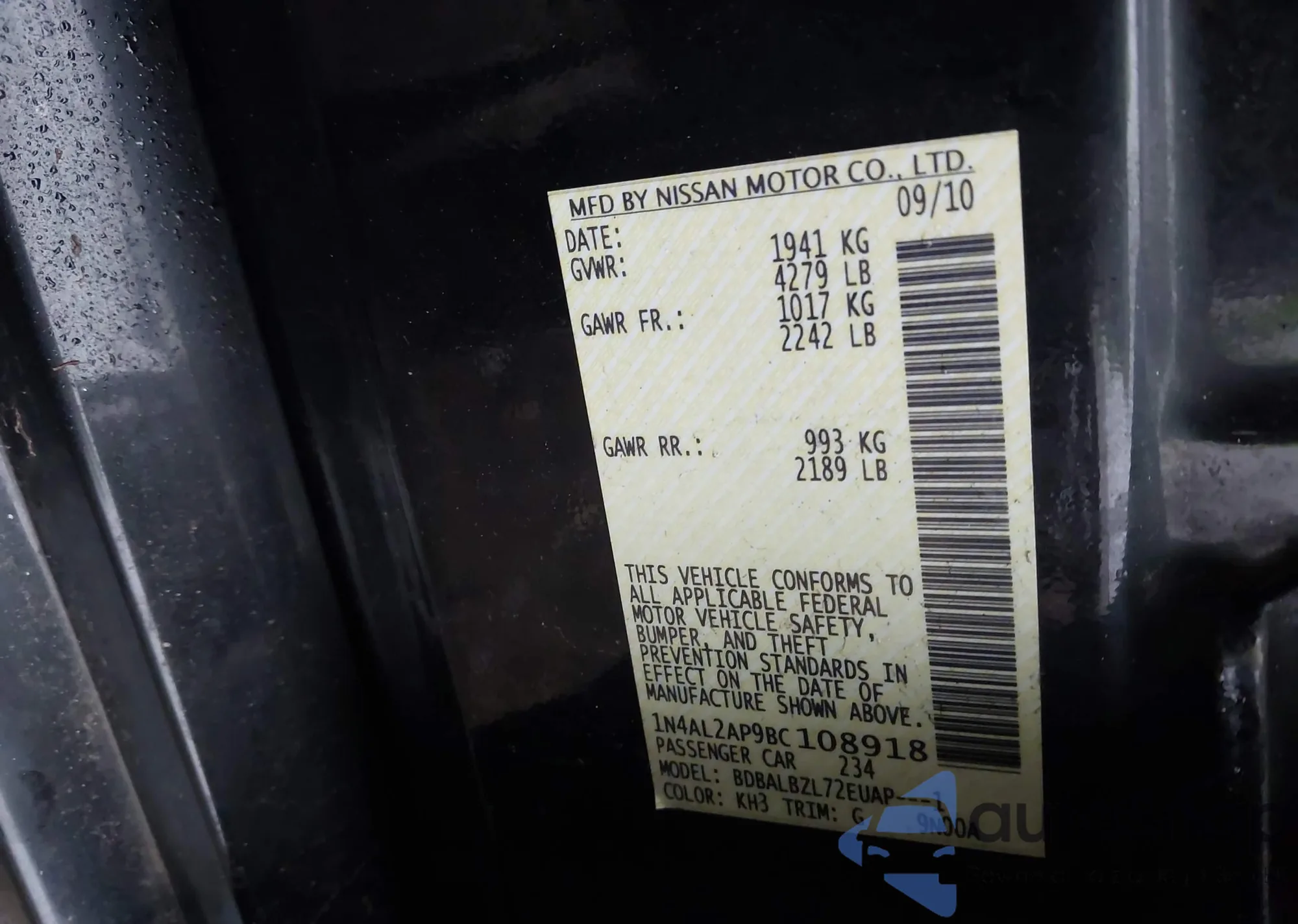 • VIN: 1N4AL2AP9BC108918