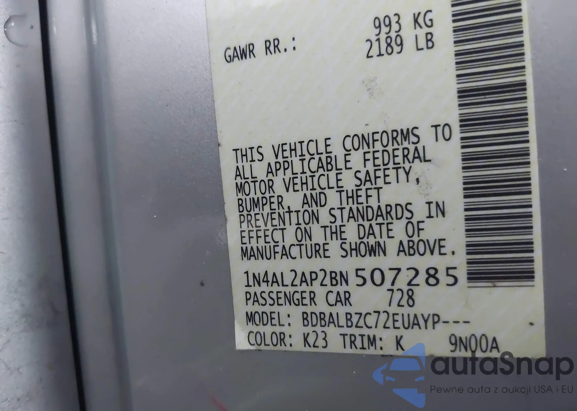 VIN: 1N4AL2AP2BN507285