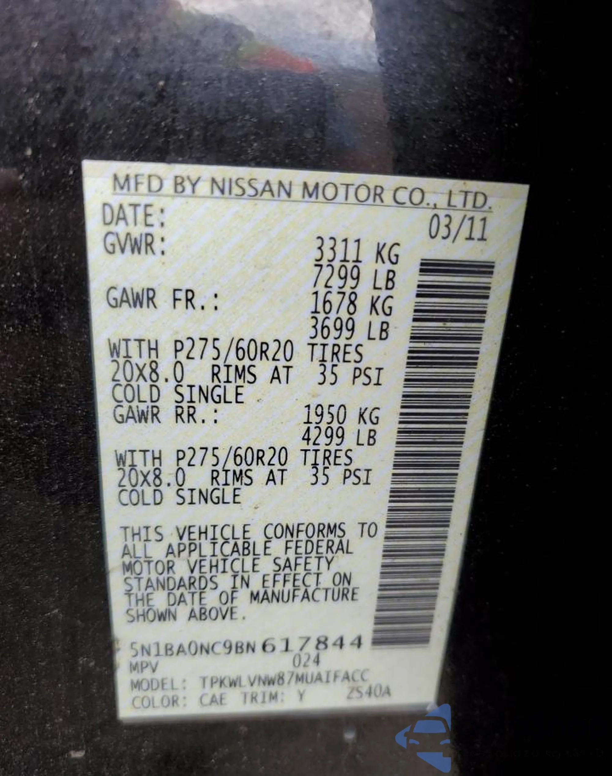 VIN: 5N1BA0NC9BN617844