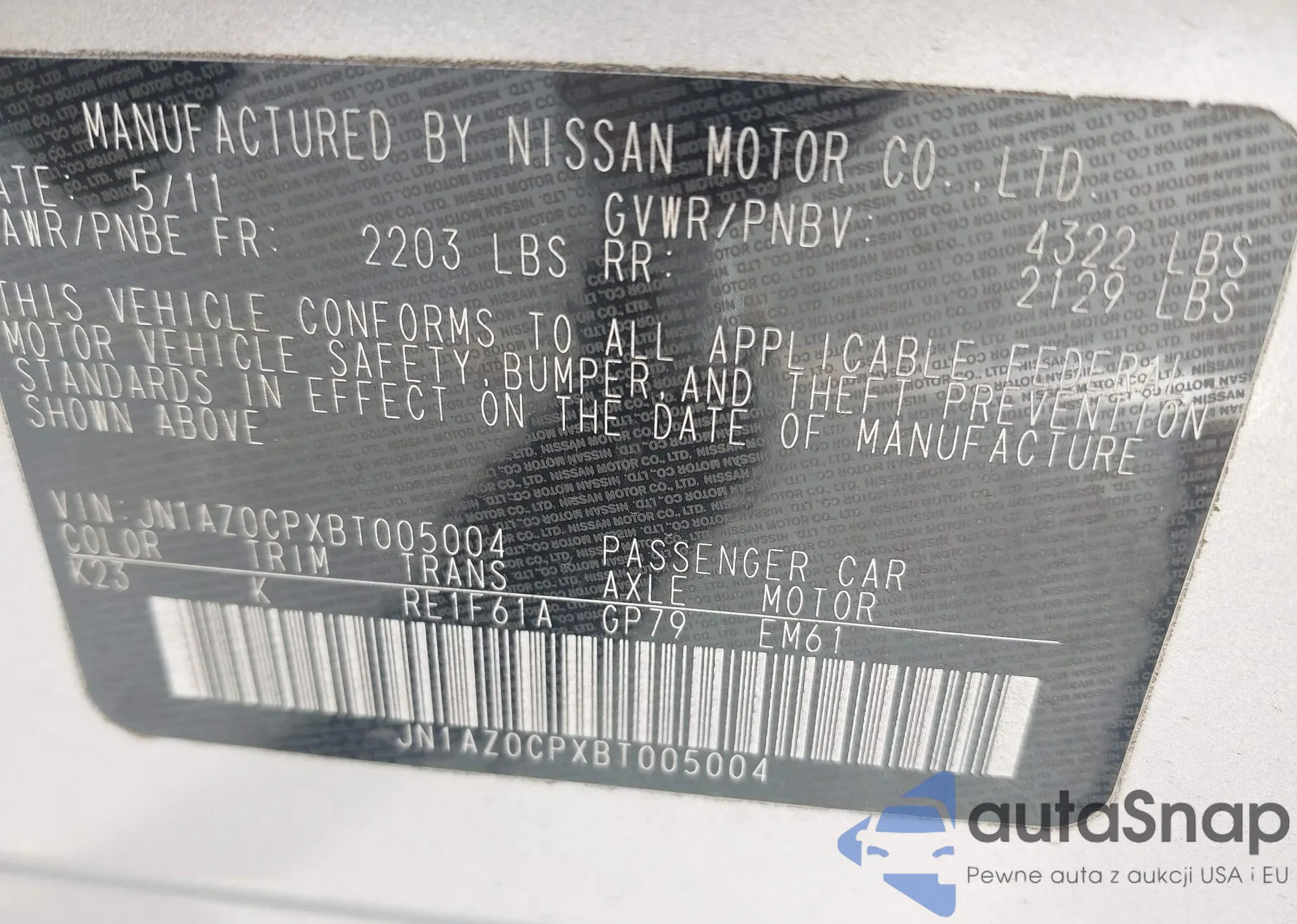 VIN: JN1AZ0CPXBT005004