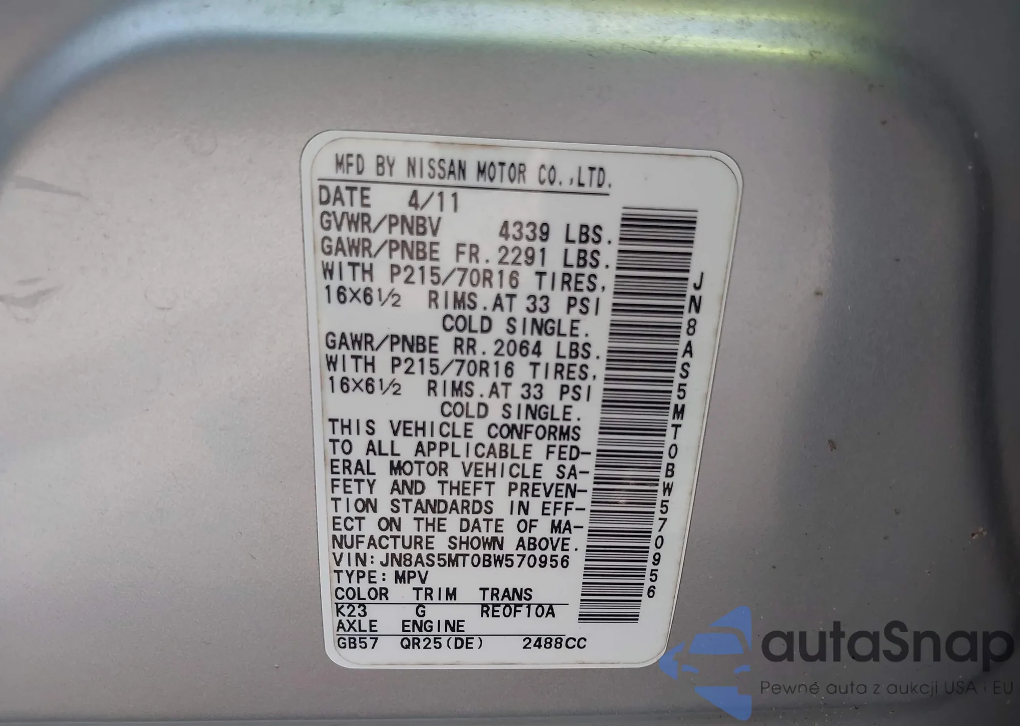 VIN: JN8AS5MT0BW570956