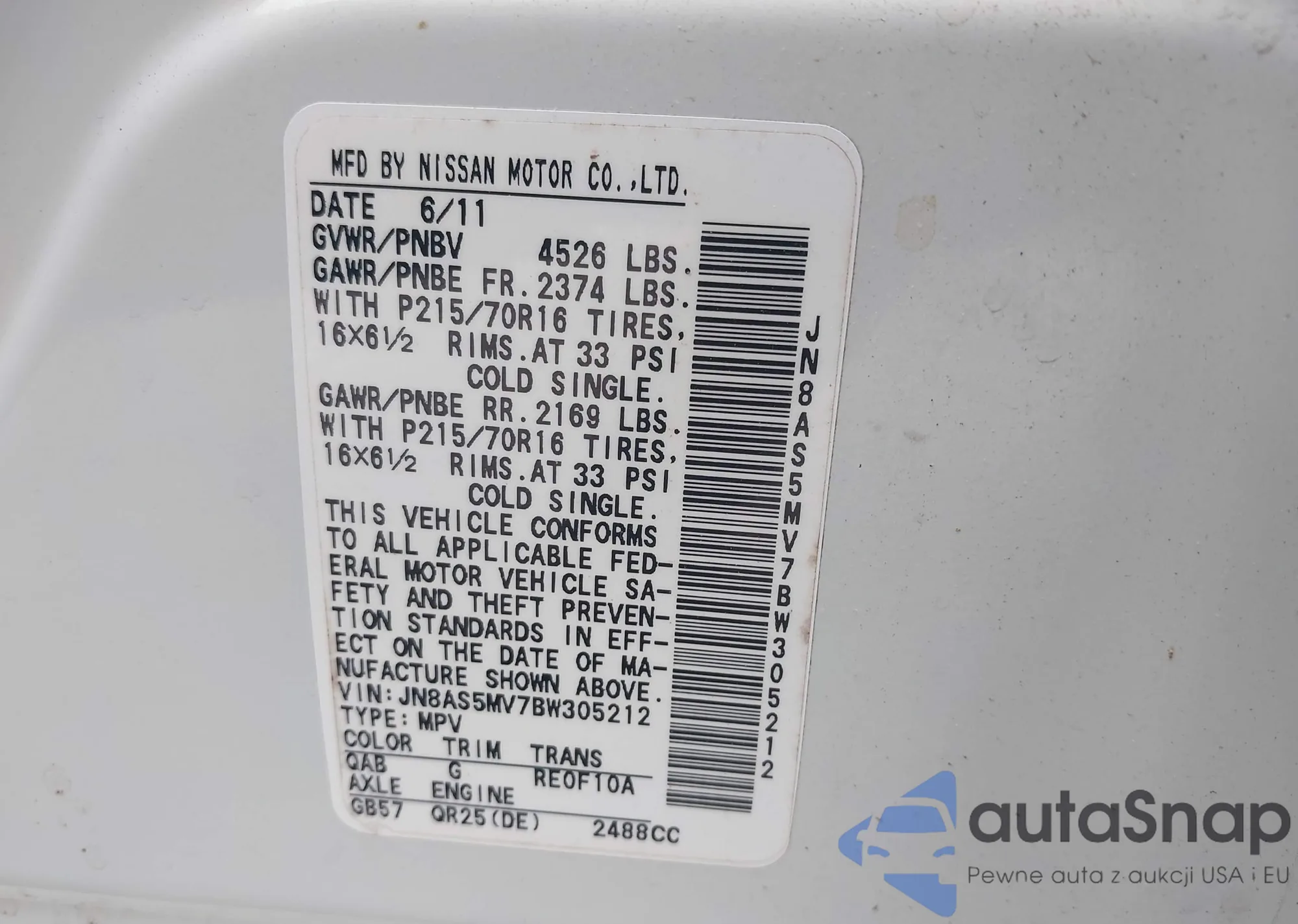 VIN: JN8AS5MV7BW305212