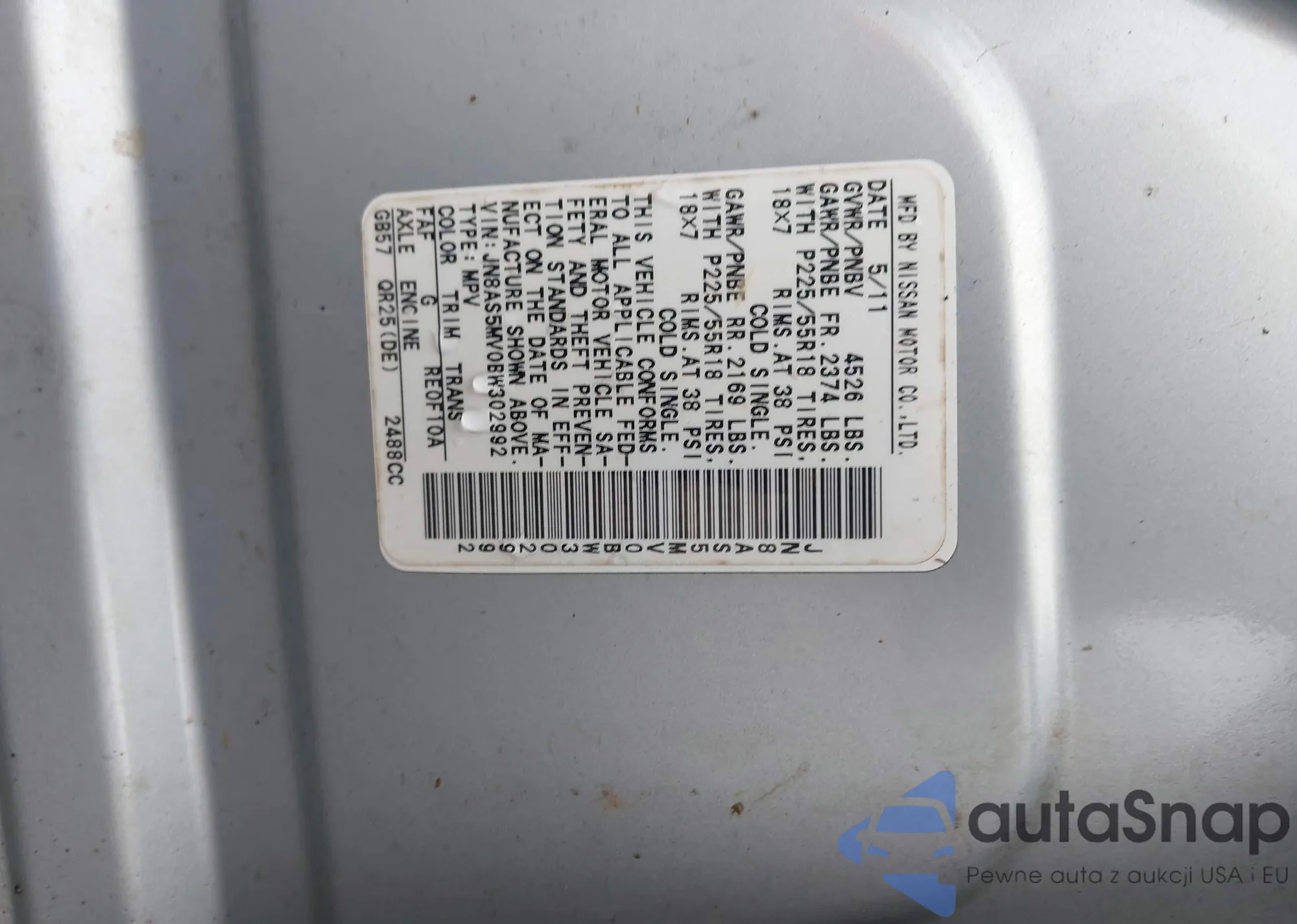 VIN: JN8AS5MV0BW302992
