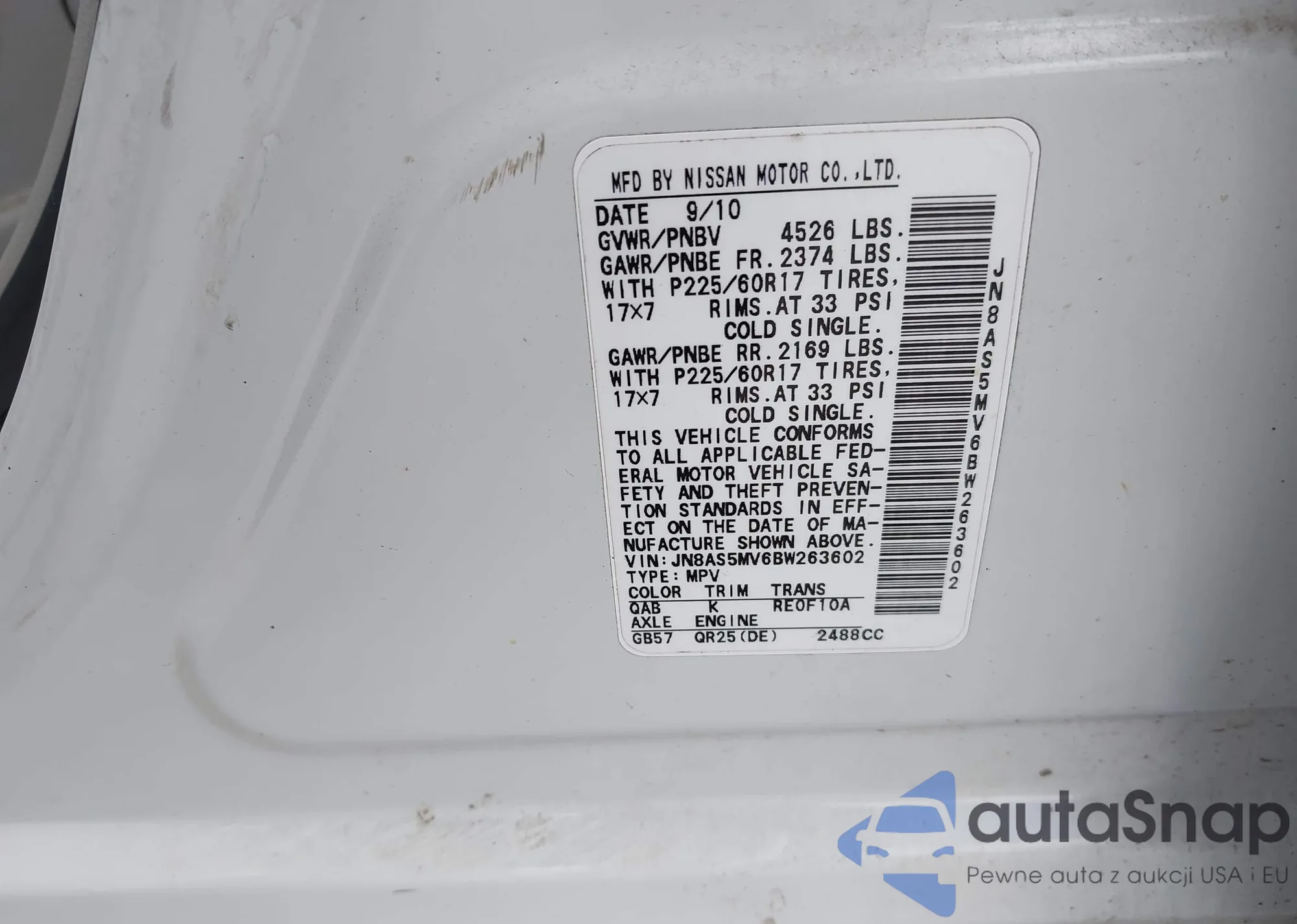 VIN: JN8AS5MV6BW263602