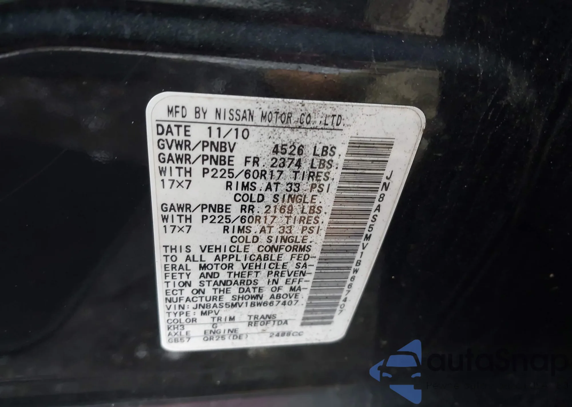 VIN: JN8AS5MV1BW667407