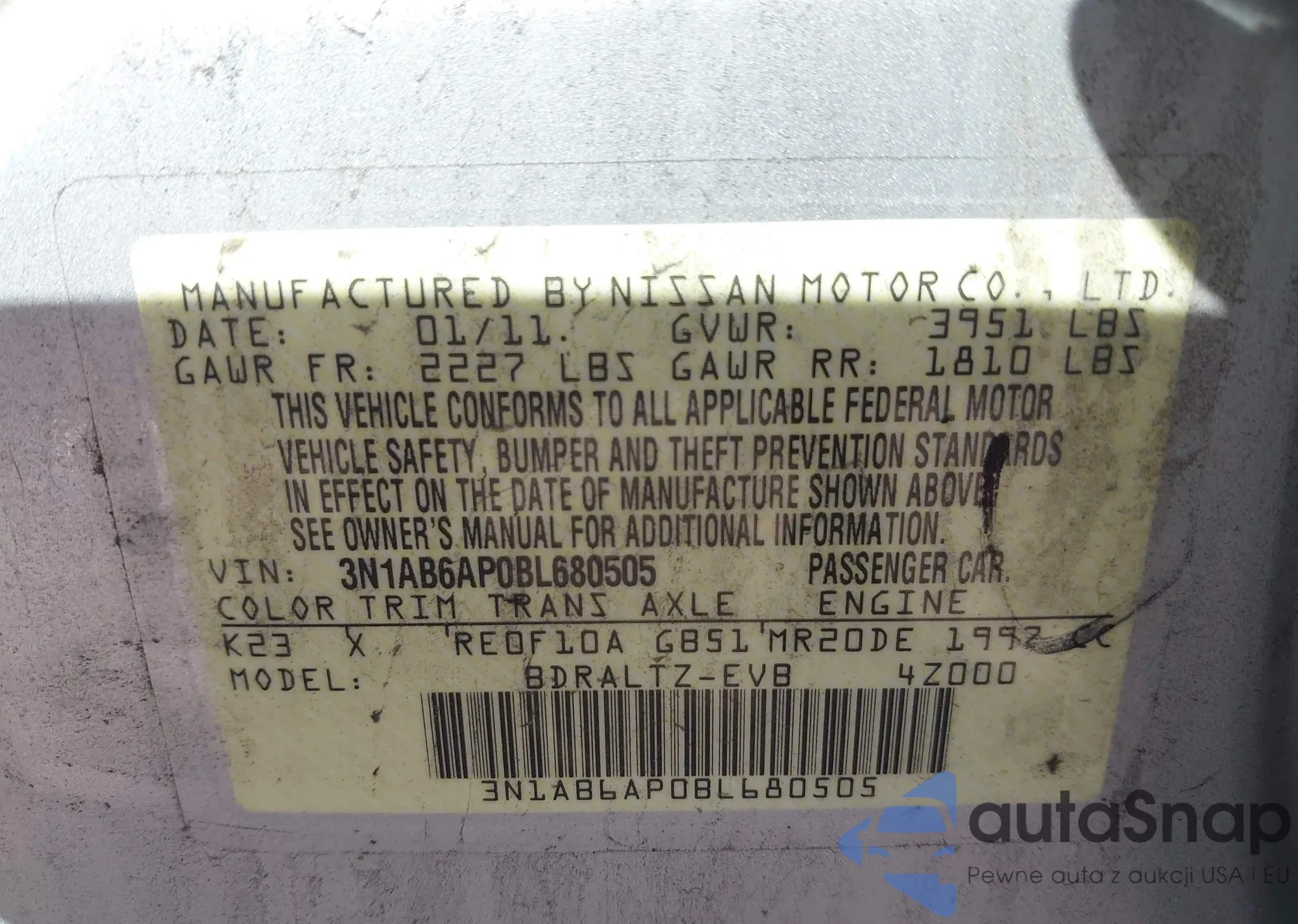 • VIN: 3N1AB6AP0BL680505