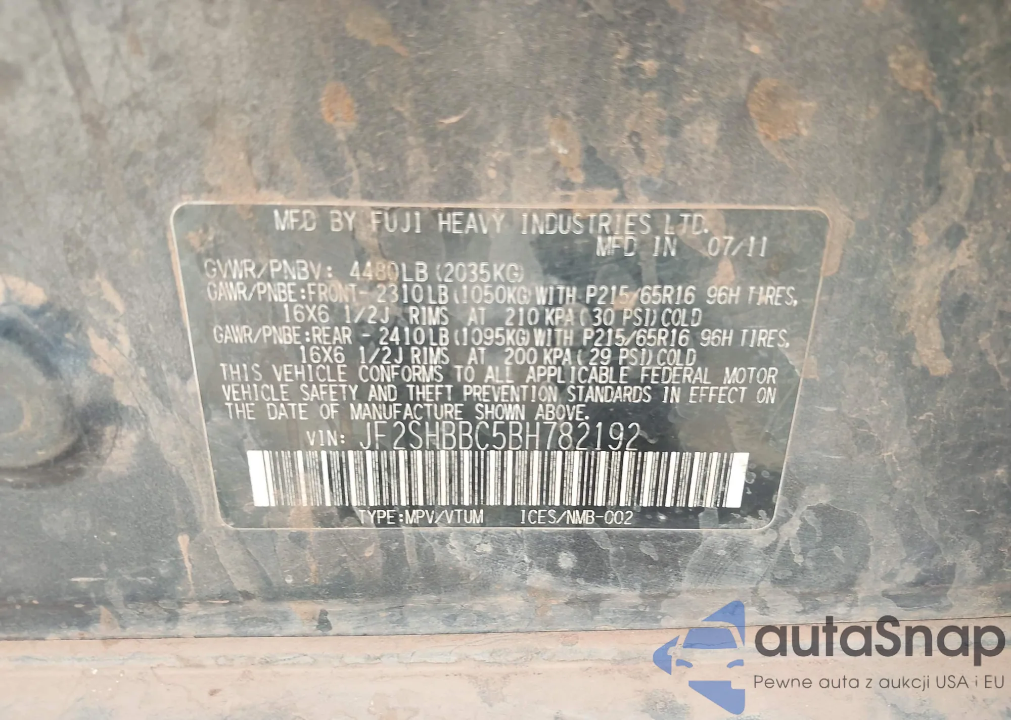 VIN: JF2SHBBC5BH782192