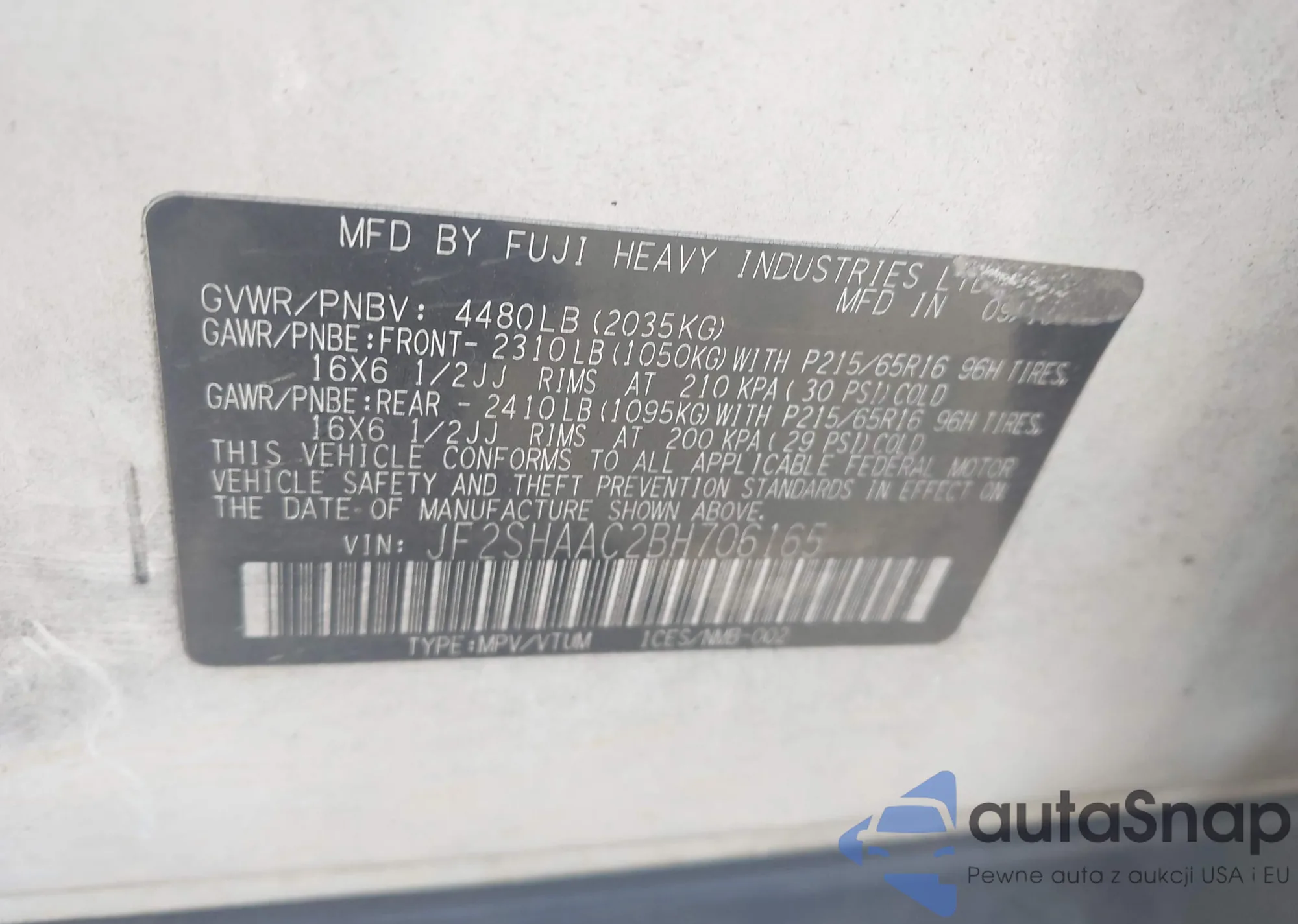 • VIN: JF2SHAAC2BH706165