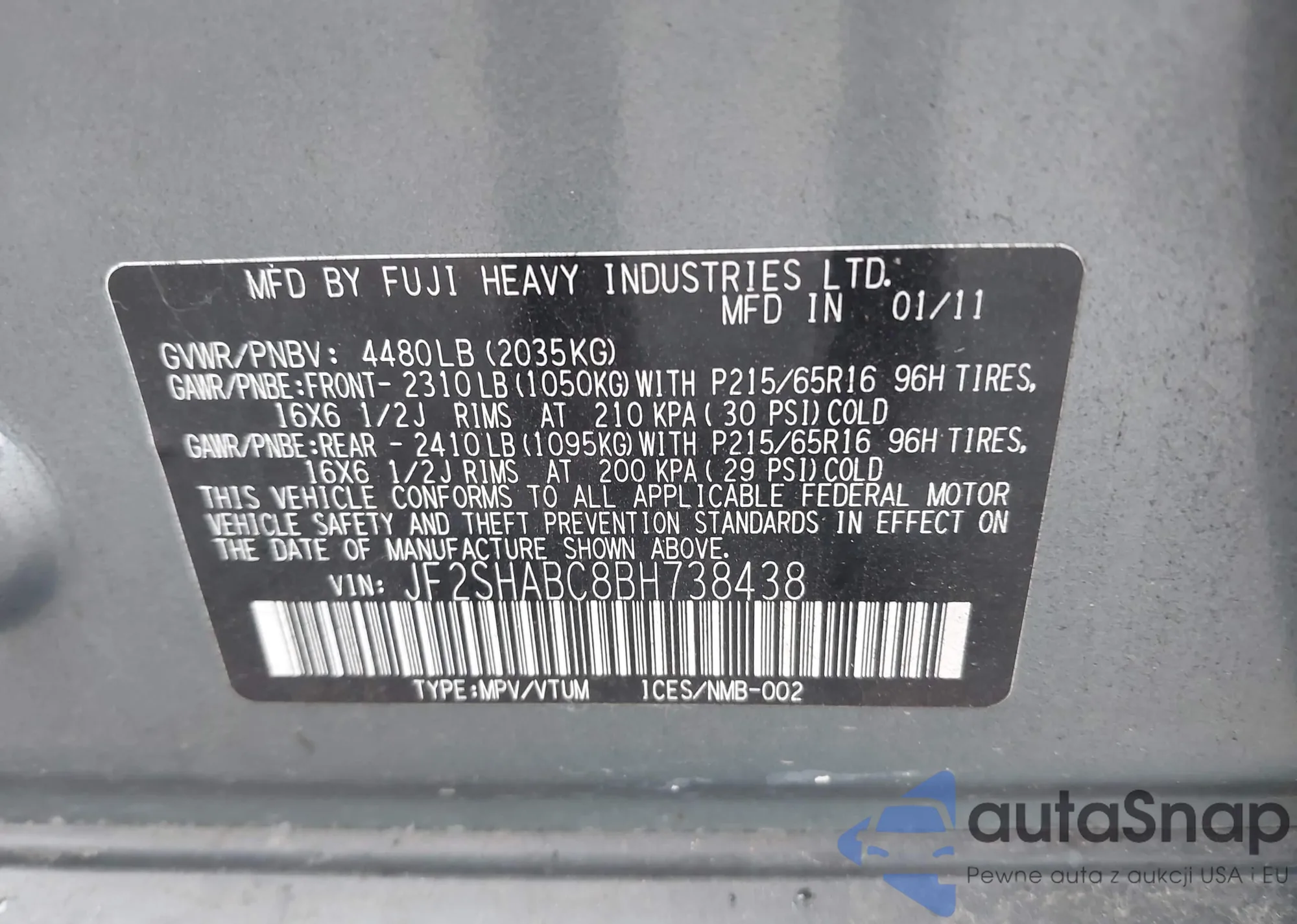 VIN: JF2SHABC8BH738438