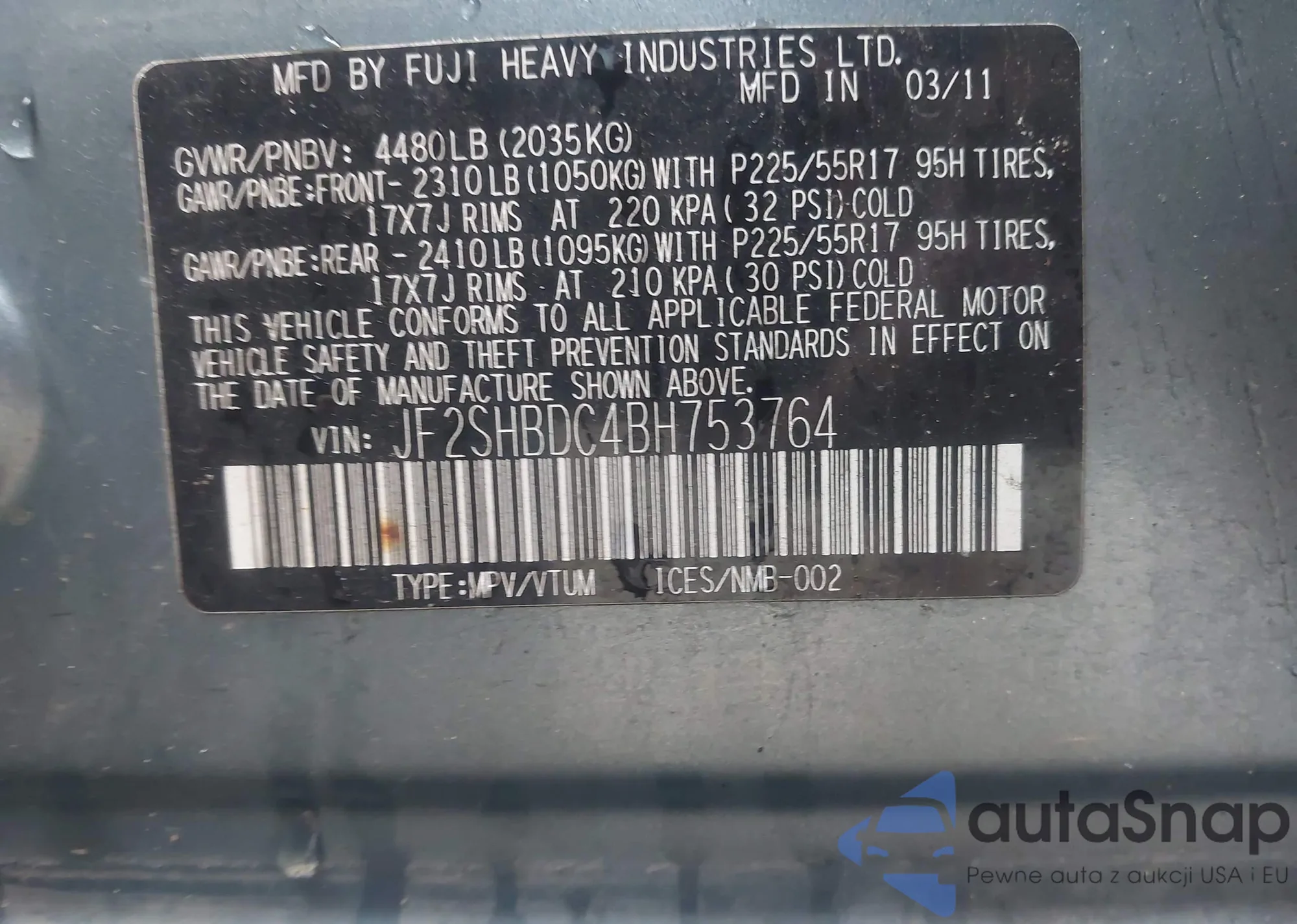 VIN: JF2SHBDC4BH753764