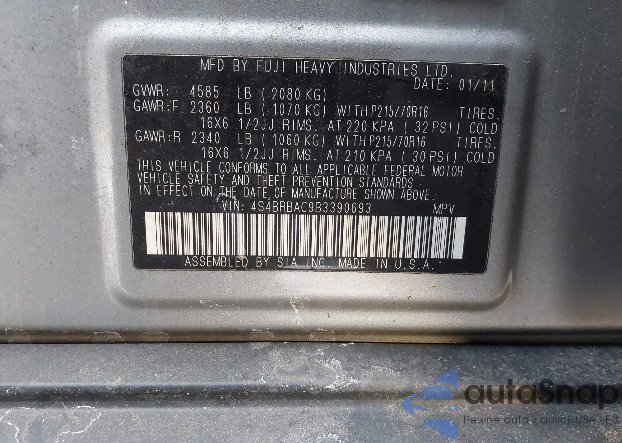 VIN: 4S4BRBAC9B3390693