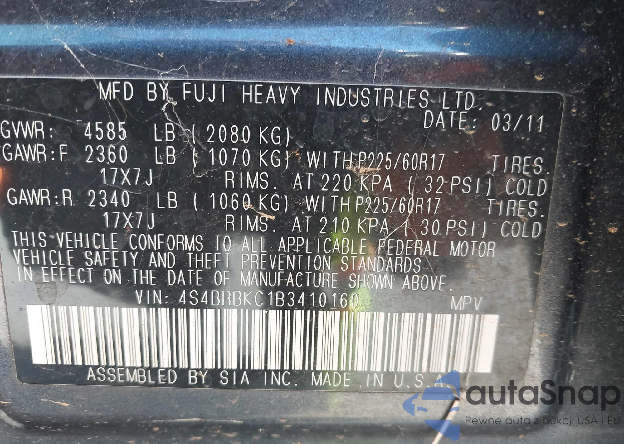 VIN: 4S4BRBKC1B3410160