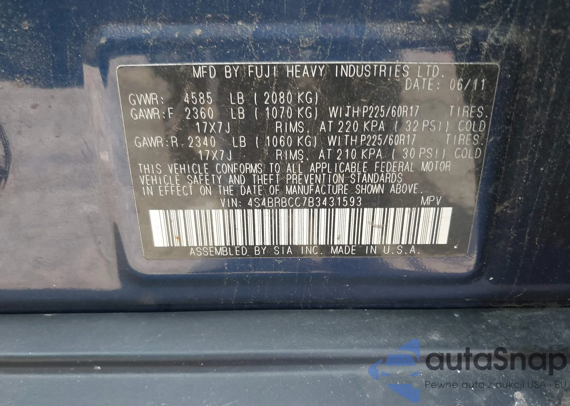 VIN: 4S4BRBCC7B3431593