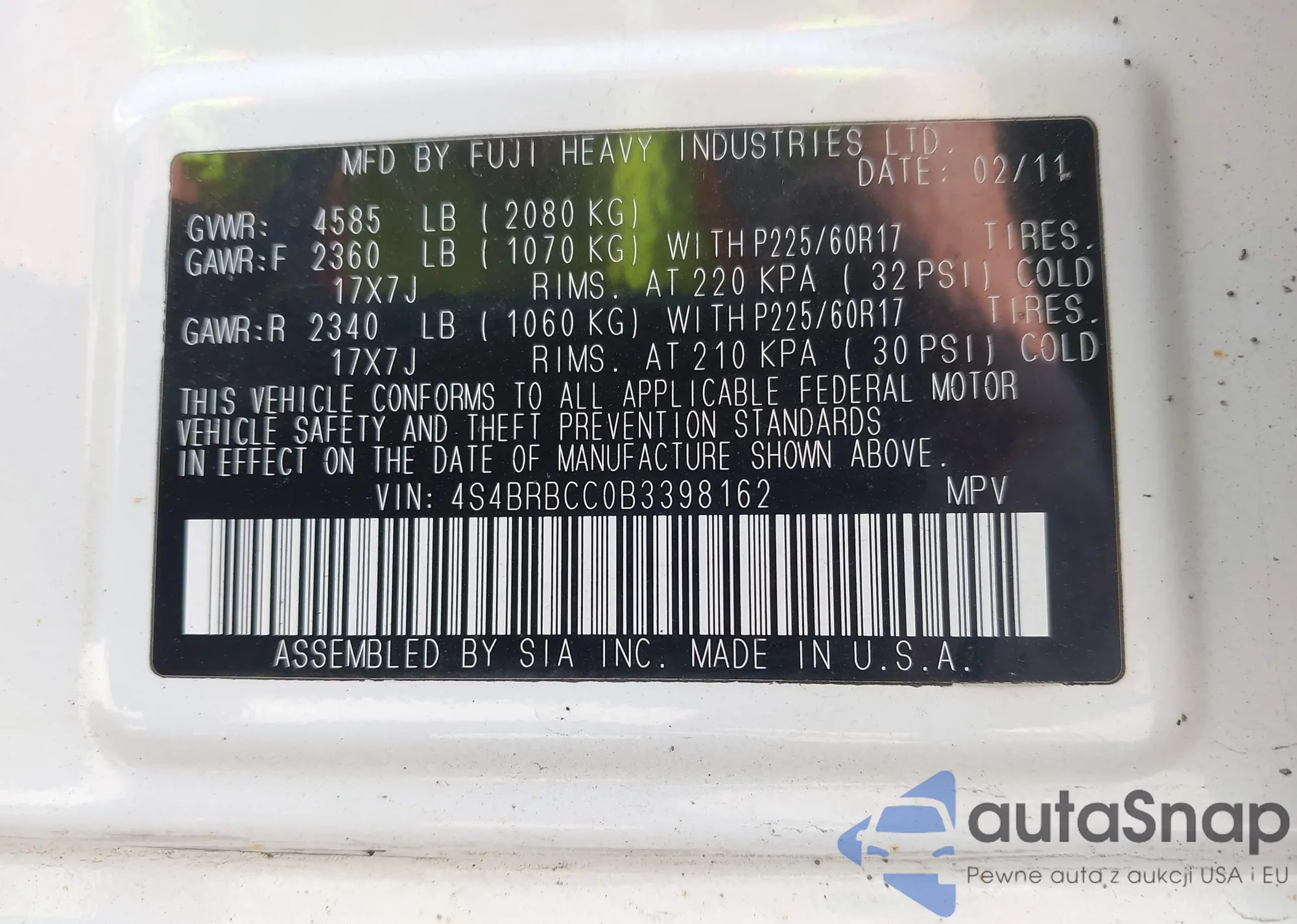 VIN: 4S4BRBCC0B3398162