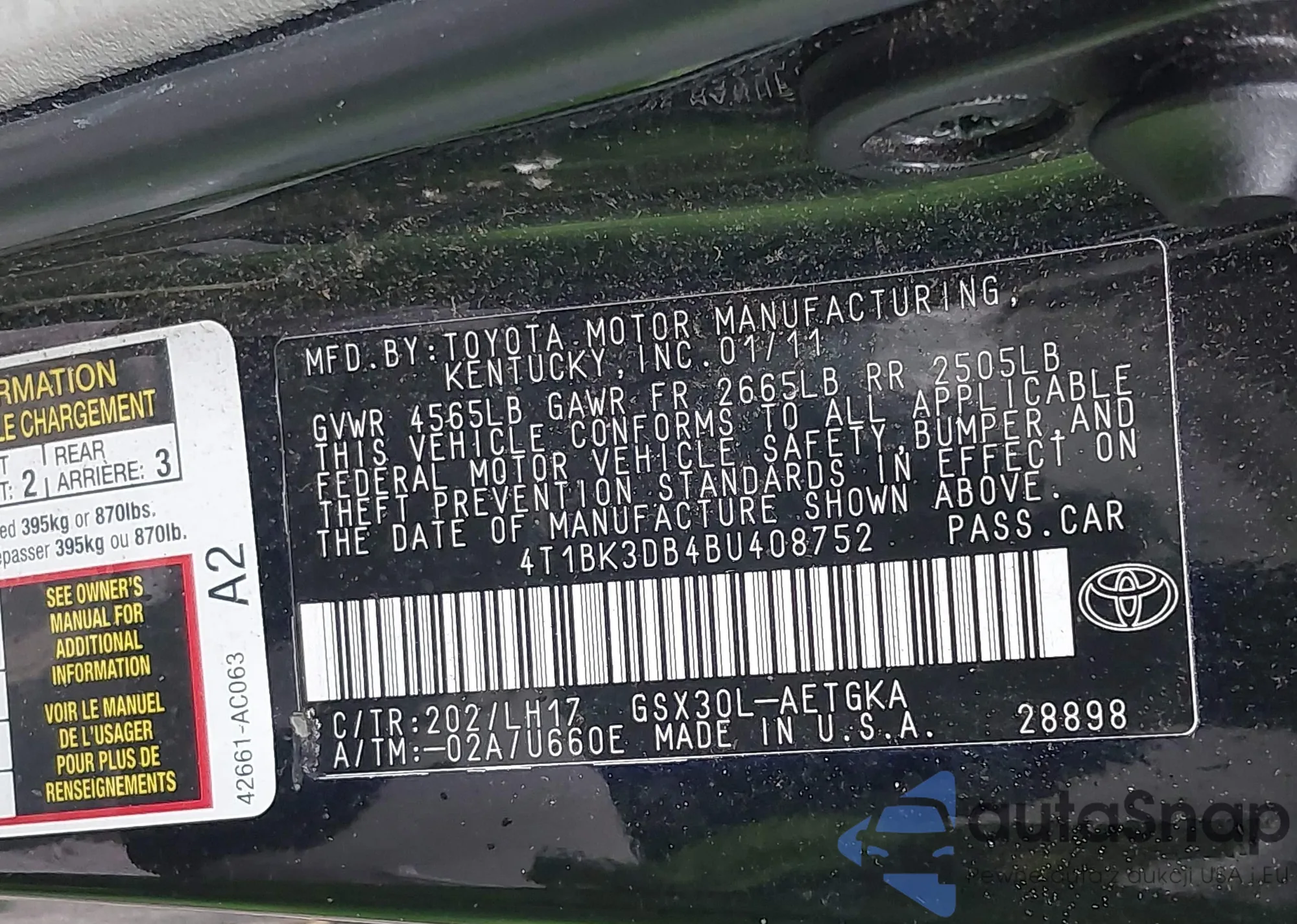 VIN: 4T1BK3DB4BU408752