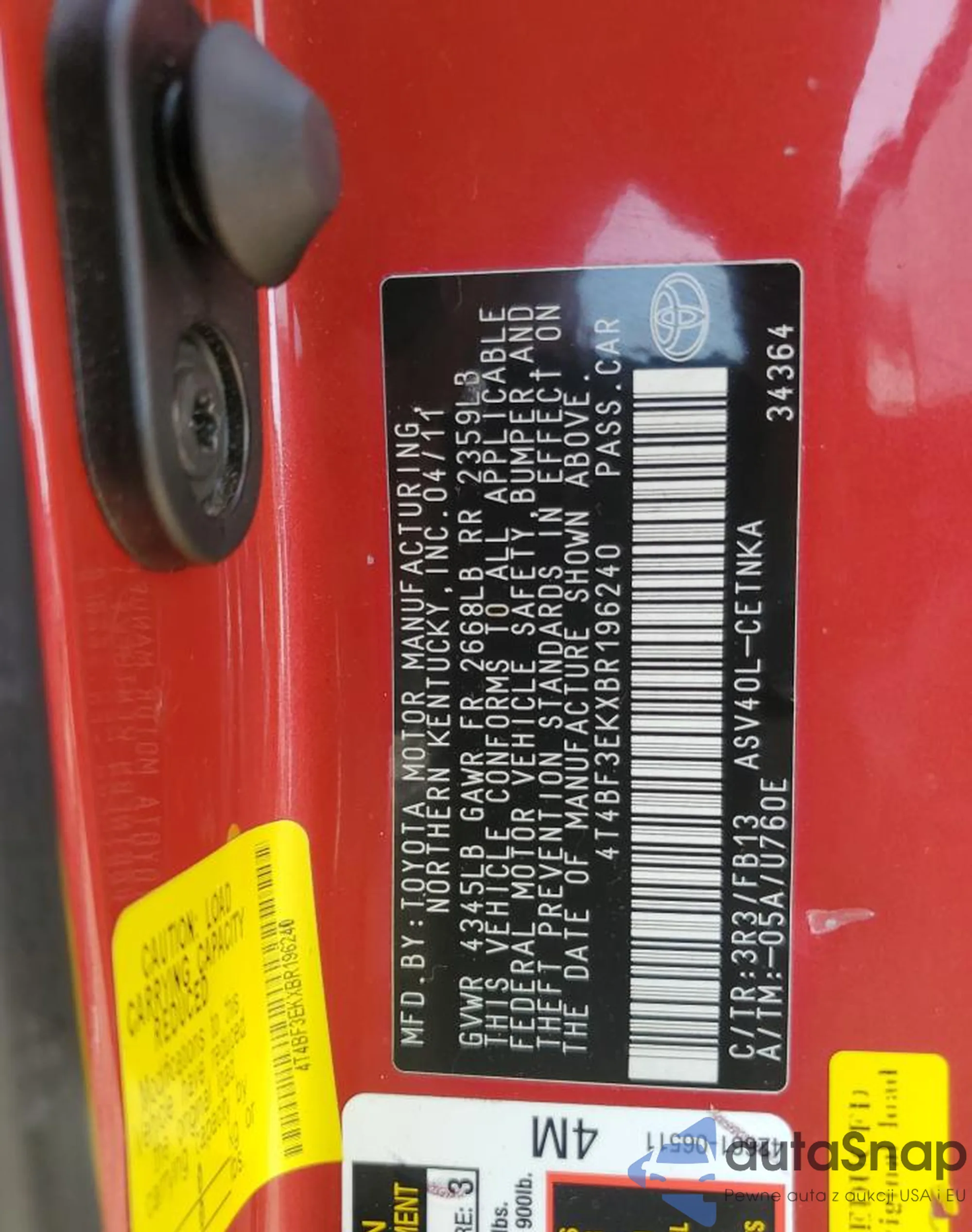 VIN: 4T4BF3EKXBR196240