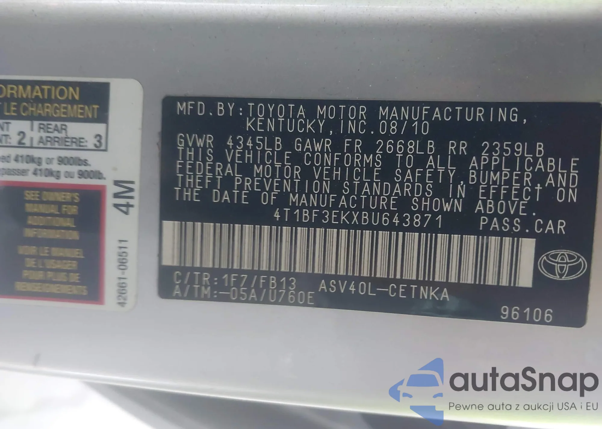 VIN: 4T1BF3EKXBU643871
