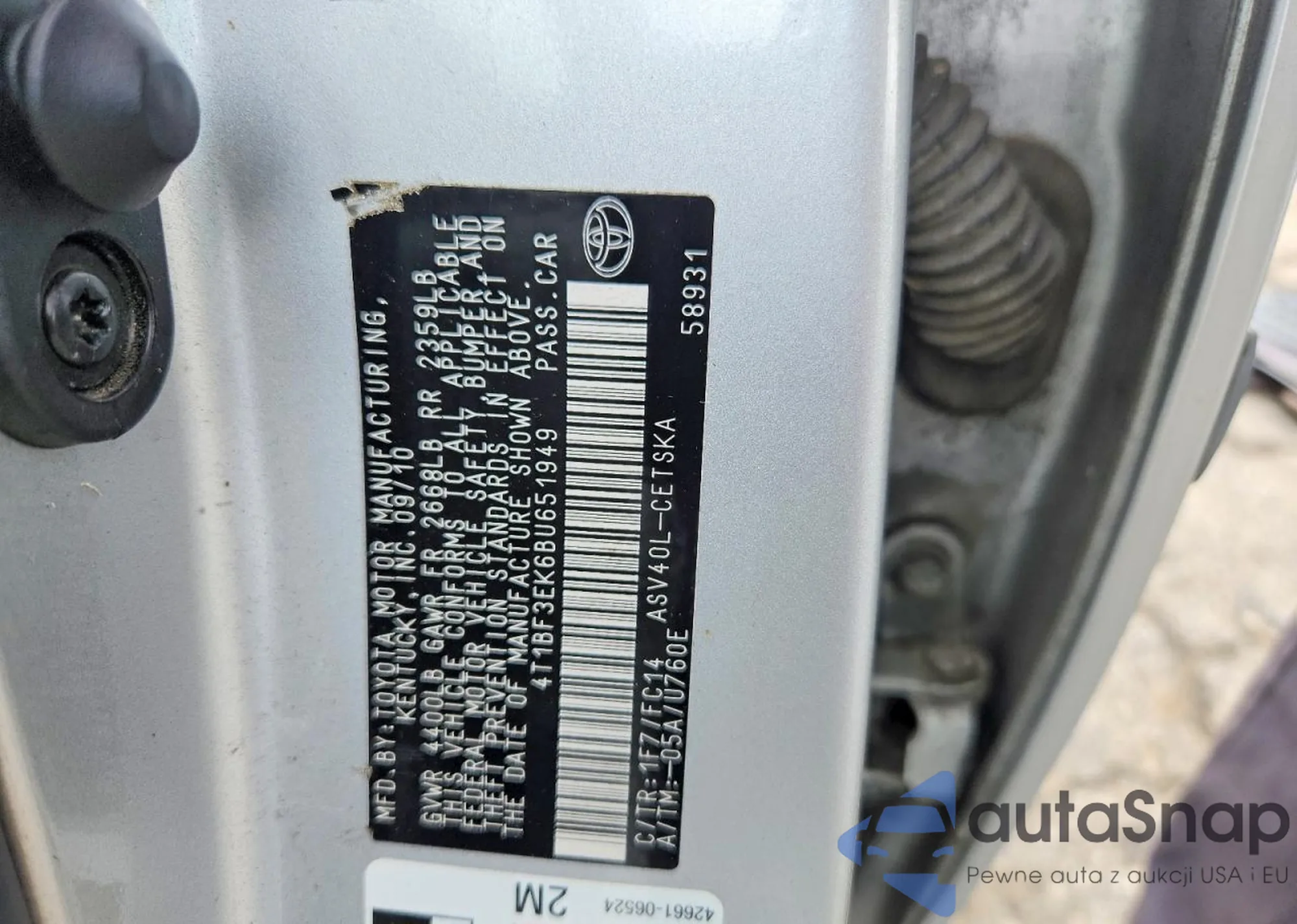 • VIN: 4T1BF3EK6BU651949
